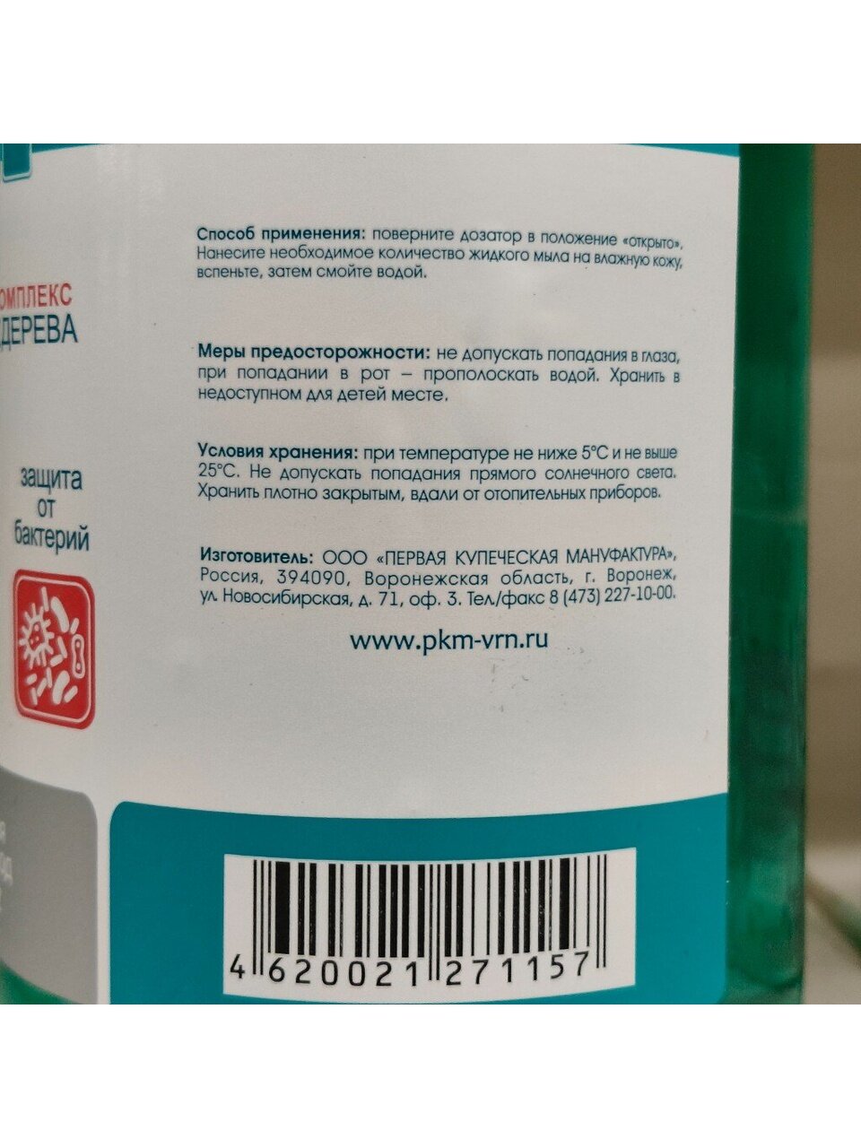 Нейтральное жидкое мыло содержит антибактериальный компонент бензалкония хлорид и эфирное масло чайного дерева. Обладает антибактериальным эффектом. Не нарушает pH баланс кожи.