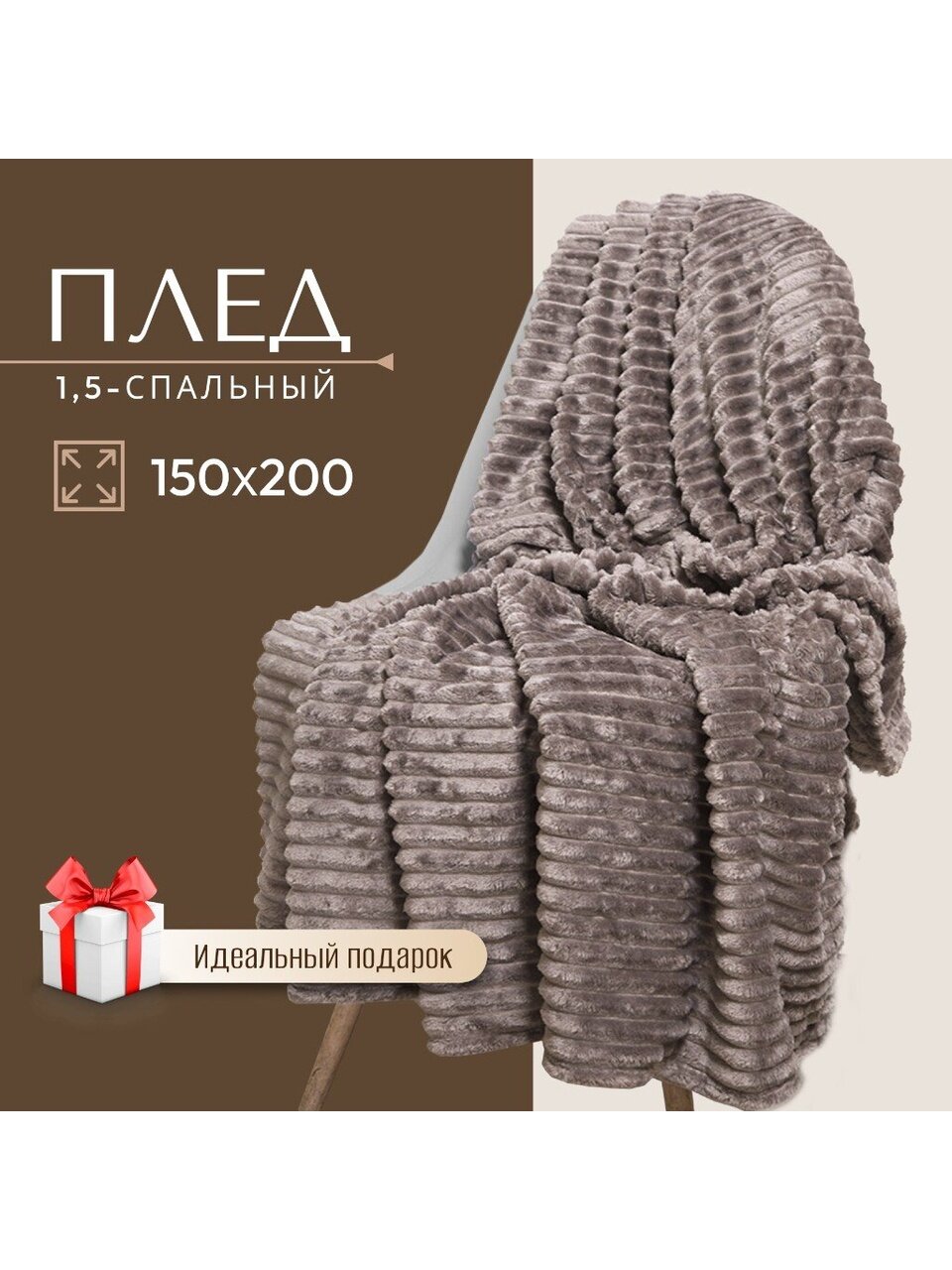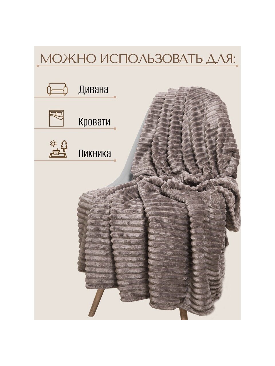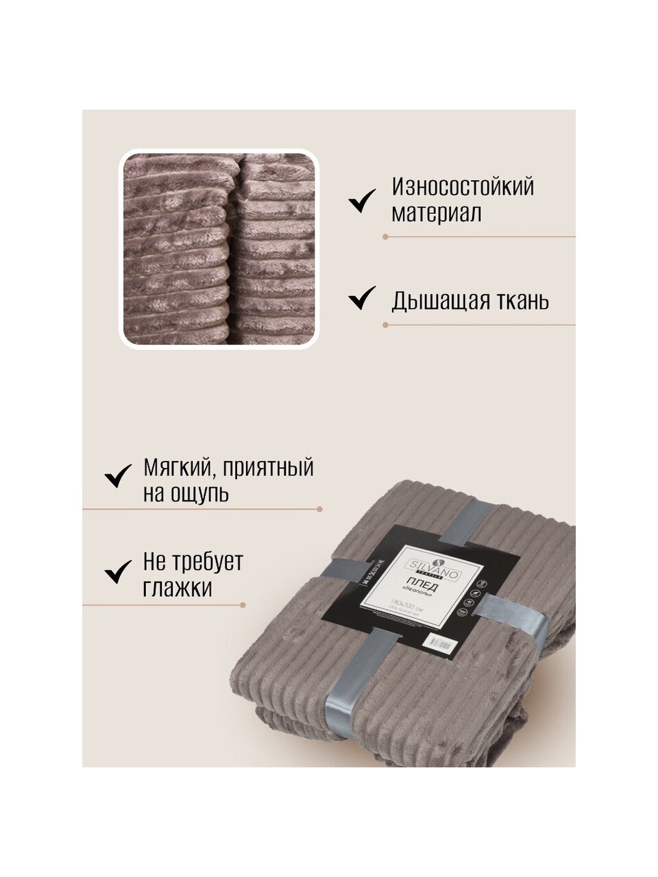 Плед 1.5-спальный Silvano Неаполь Полоски 150х200 см — уют и тепло для дома: мягкий велсофт, плотность 280 г/м², шоколадный цвет, цена без переплат