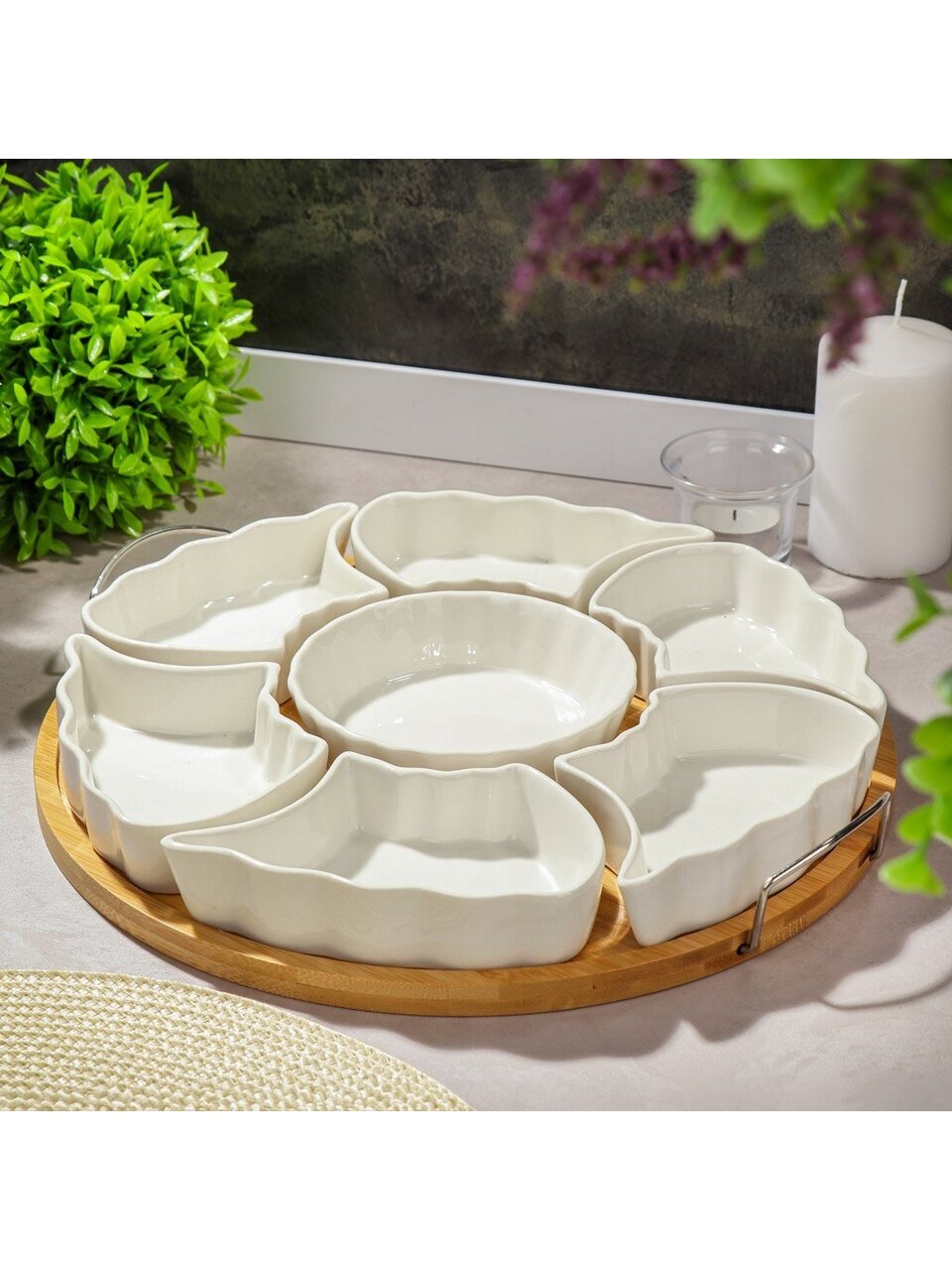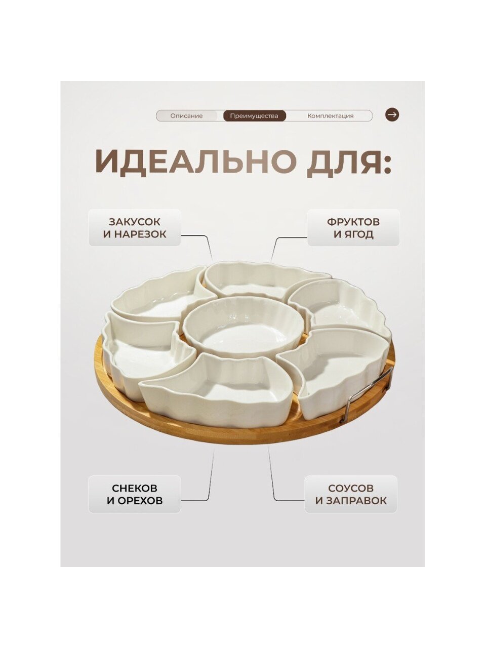 Такая посуда непременно понравится любой хозяйке, потому как позволяет эффективно экономить место на праздничном столе, а также красиво расположить различные блюда и закуски.