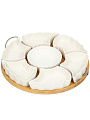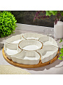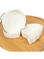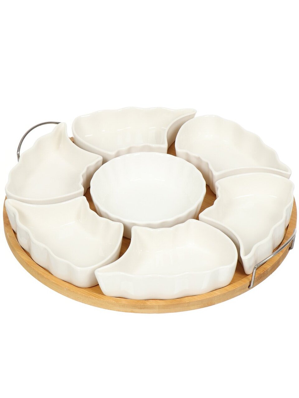 Менажница понадобится для хранения сразу нескольких блюд и для подачи на стол. Выполнена в виде нескольких декоративных емкостей, расположенных на деревянной подставке. С помощью такой менажницы можно подать на стол сразу несколько блюд в разных тарелках, но в пределах одной посуды, при этом не смешивая их между собой. Такая замысловатая вещь идеально подходит для сервировки определенных блюд, например: варенья, снеков или соусов, салатов, заправок и вторых блюд, рыбу со всякими соусами и прочие закуски.