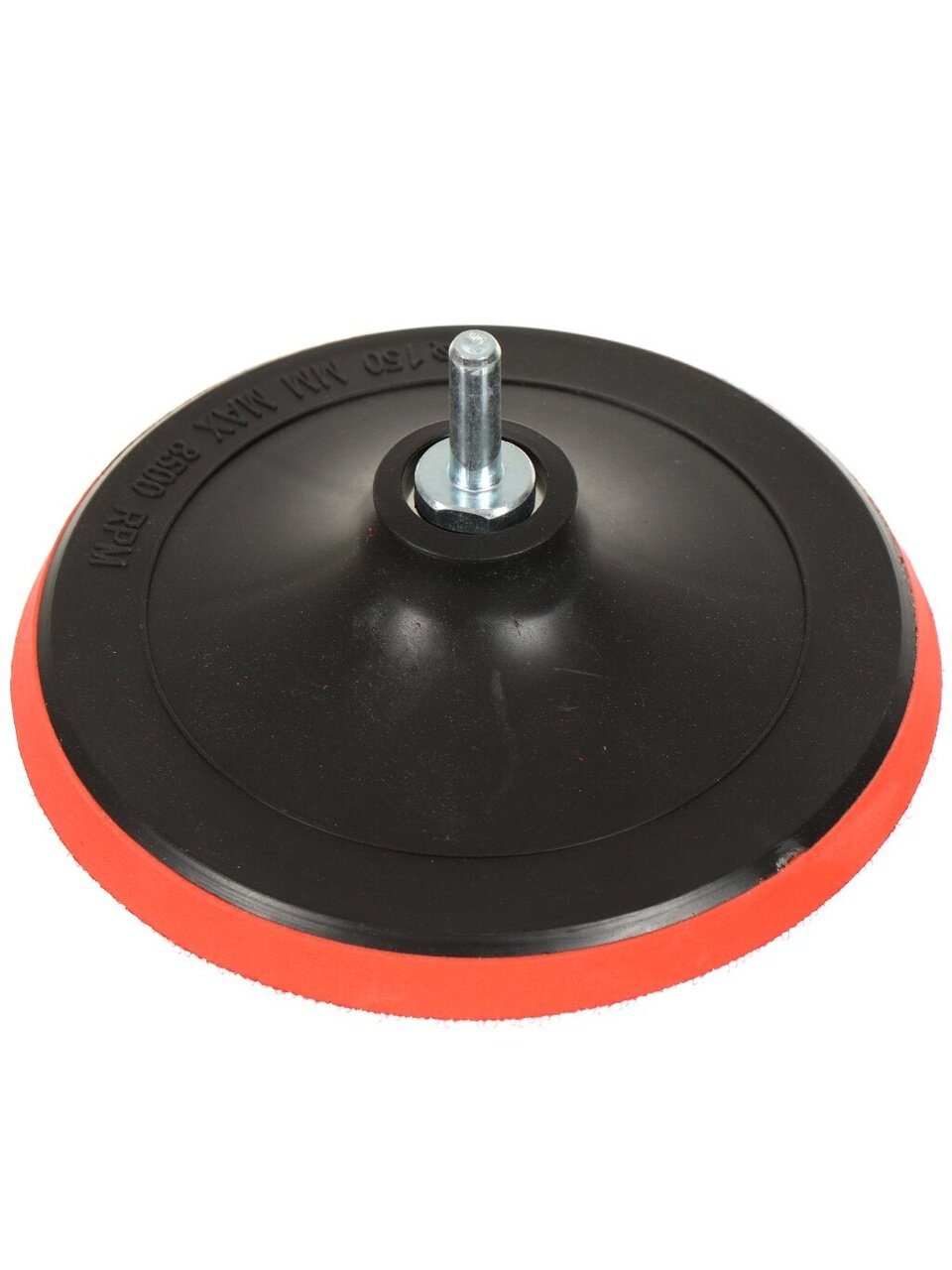 Тарелка опорная диаметром 150 мм представляет собой круглую насадку из ABS пластика, на которую крепится шлифовальный круг. Полировальная быстросъемная насадка крепится липучкой.