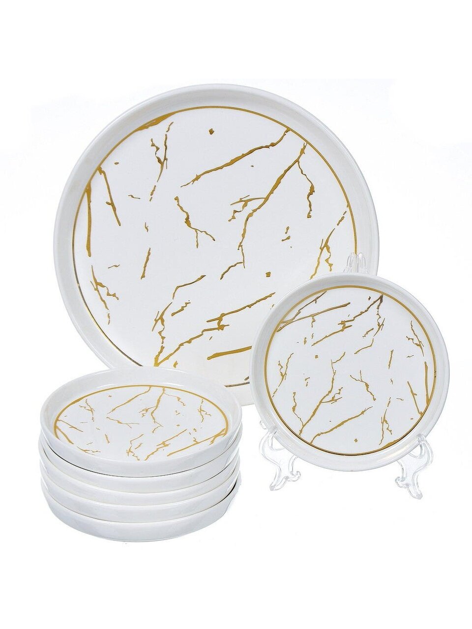 Набор тарелок станет замечательным завершением ужина. С таким сервизом любой десерт будет еще вкуснее и аппетитнее. Блюдо предназначено для подачи тортов, цельных или порционных кексов, пирогов и пирожных, блинов или оладий, ассорти из фруктов. Такой универсальный набор точно должен быть в арсенале вашей столовой посуды.