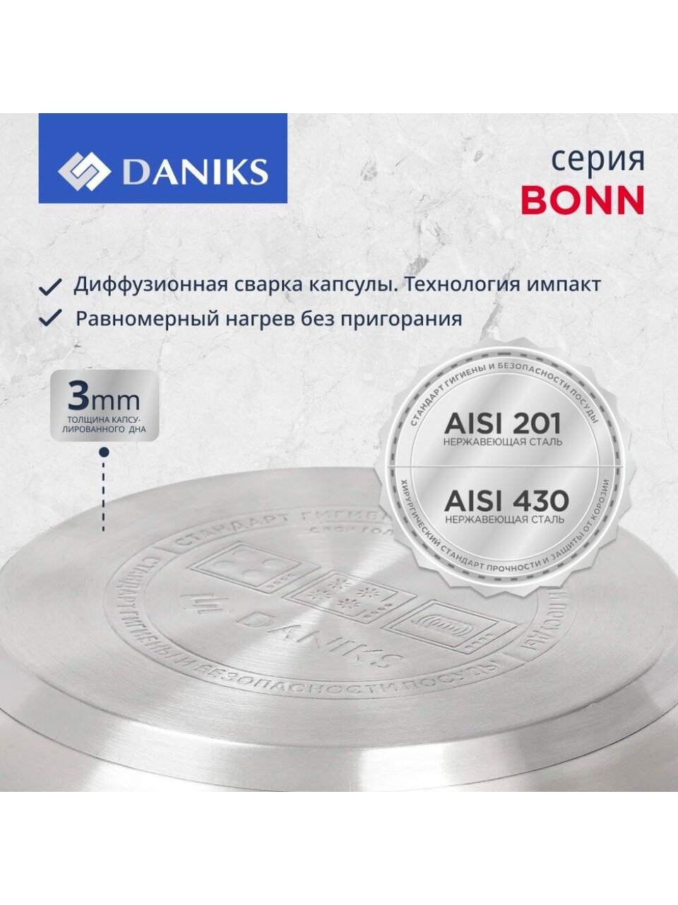 Благодаря высокой теплопроводности используемых материалов готовить можно даже на низкой мощности плиты, что позволяет снизить энерготраты.