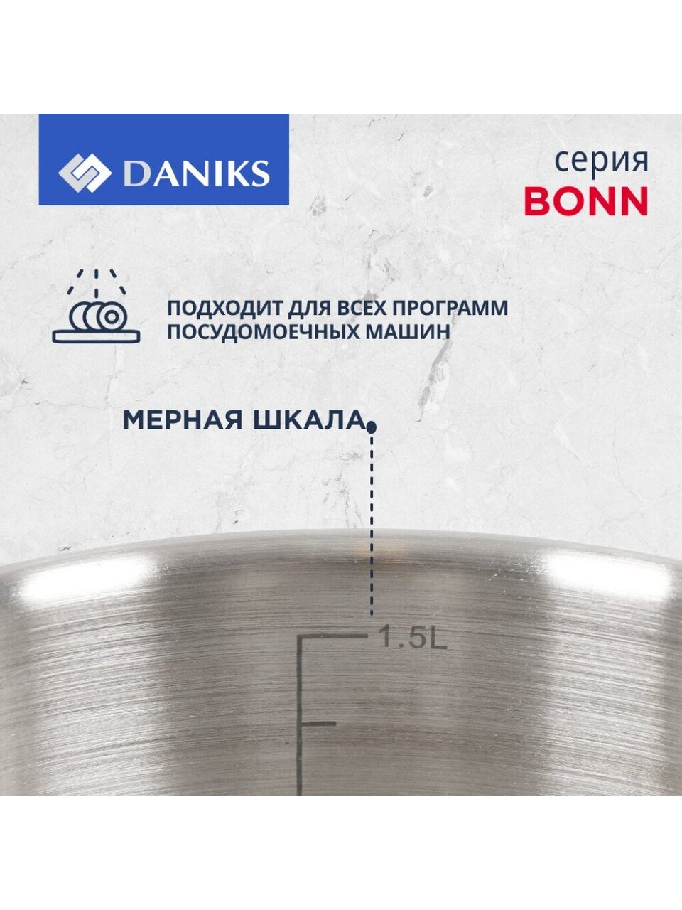 «Ковш нержавеющая сталь, 1.8 л, крышка стекло, металлическая ручка, индукция, Daniks, Бонн, GS-01319-16SP» можно купить мелким, средним и крупным оптом по привлекательным ценам благодаря тому, что мы сотрудничаем с российскими и международными производителями напрямую, без посредников.