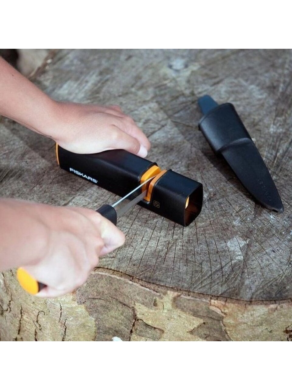 Точилка для топоров и ножей Fiskars Xsharp - это отличное дополнение к Вашим инструментам. Керамический диск с канавками позволяет всегда держать режущую поверхность вашего инструмента в идеально остром состоянии. Имеются отдельные пазы для топоров и ножей. Точилка легко разбирается для чистки. На основании инструмента имеются специальные подушечки, которые исключают скольжение при заточке.