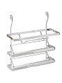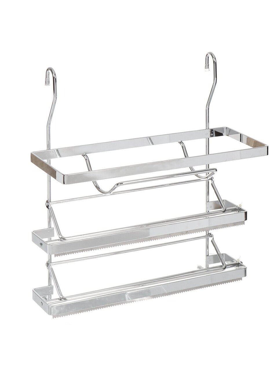 Навесной держатель для бумажных полотенец, фольги, или пищевой пленки выполнен из металла. Он устойчив к механическим повреждениям и пару, легко моется. Такой держатель отлично подойдет к интерьеру вашей кухни. Держатель устанавливается на рейлинг с помощь двух крючков.