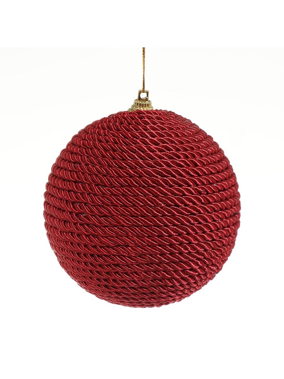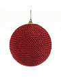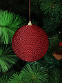 Диаметр шара — 10 см, цвет — насыщенный красный, поверхность матовая, крепление — на подвеске.