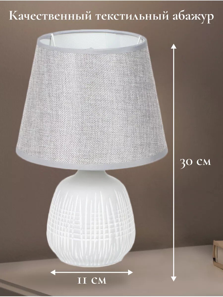 Настольный светильник обеспечивает комфортное освещение для работы и чтения. Серый абажур создает мягкий и рассеянный свет, защищая глаза от яркого освещения. С помощью светильника вы сможете создать уютную атмосферу и организовать удобное рабочее пространство в вашем доме. Настольный светильник может стать главным украшением интерьера. С его помощью вы сможете создать уютную атмосферу и организовать удобное рабочее пространство в вашем доме.