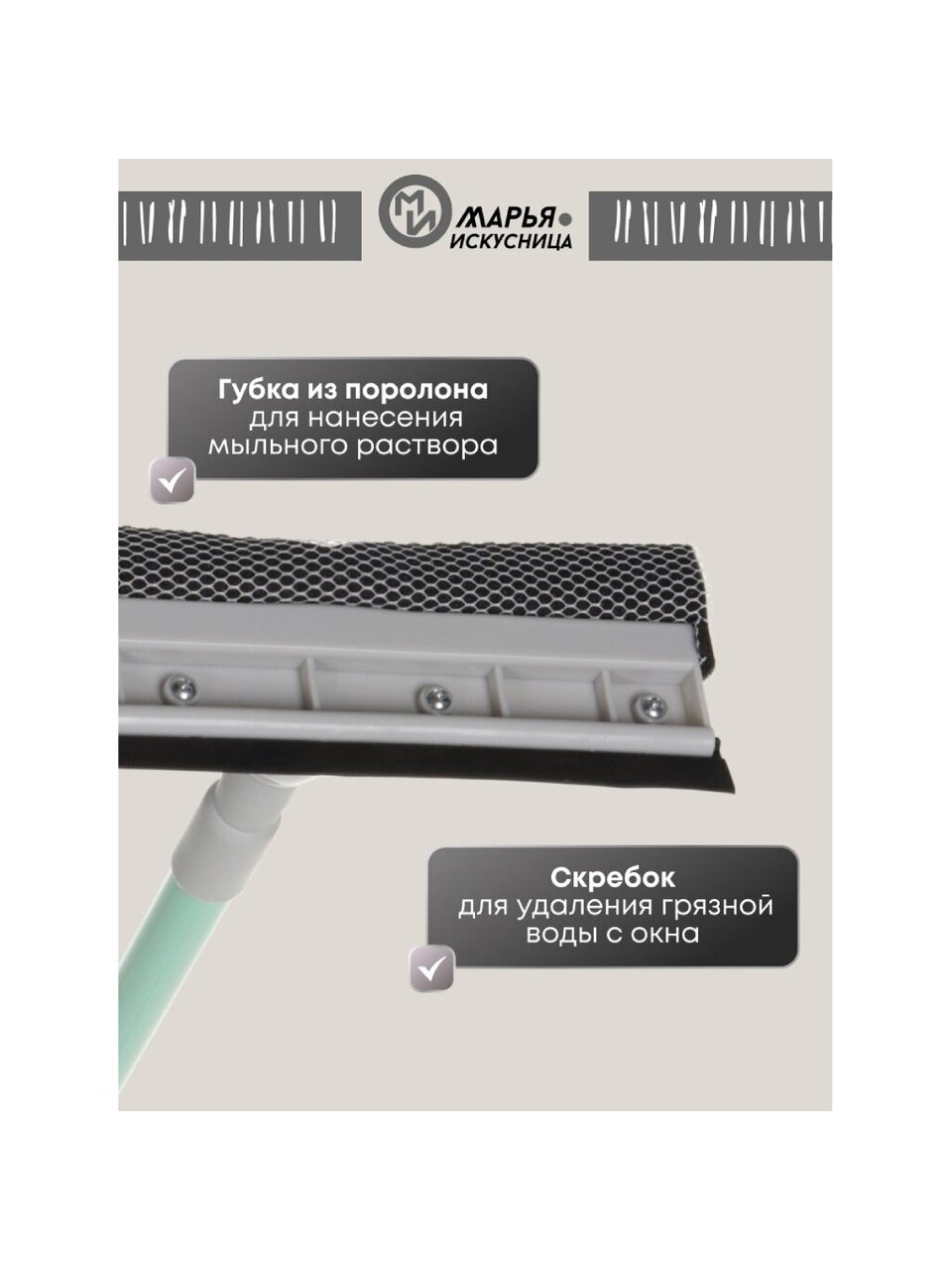 Окномойка - удобное приспособление для мытья окон. Она снабжена скребком из качественной резины, не твердеющей при низких температурах, и губкой из плотного поролона, покрытого синтетической сеткой, стойкой к истиранию.