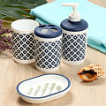 Приятно, когда все предметы в доме находятся в гармонии друг с другом, поэтому комплект аксессуаров для ванных комнат выполнен в едином дизайне. Обтекаемые формы комплекта и приятные оттенки, несомненно, придадут уют помещению и легко впишутся в любые интерьерные решения. Продуманная комплектация (мыльница для мыла любой формы, диспенсер для жидкостей, стаканчик для ванной комнаты и подставка под зубные принадлежности) сделает посещение ванной максимально комфортным.