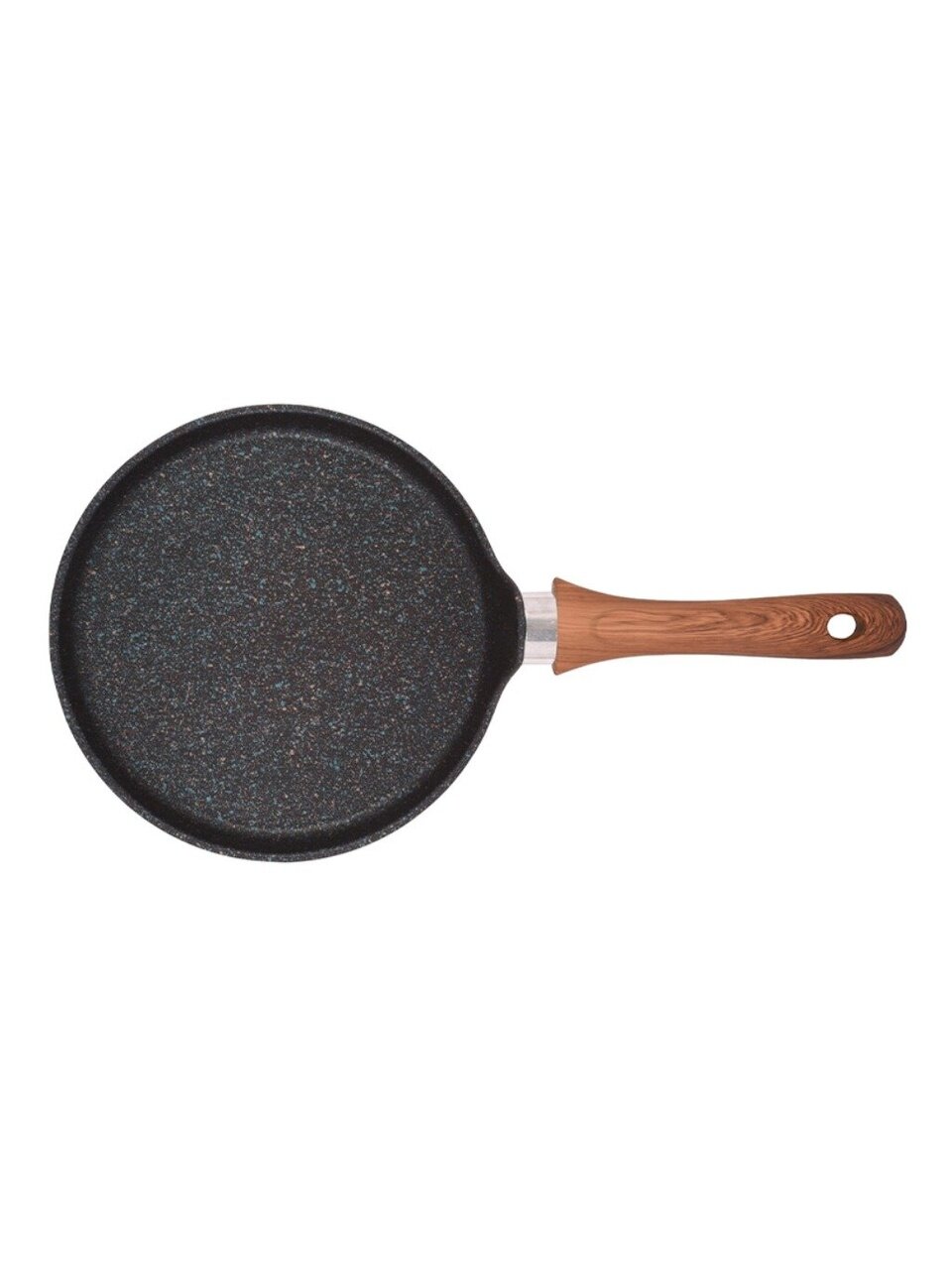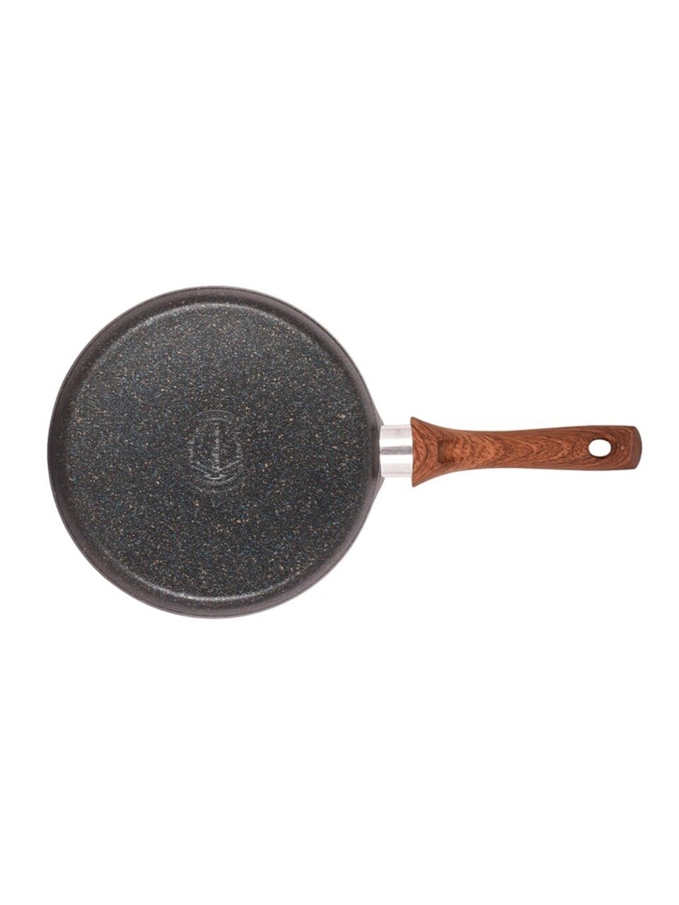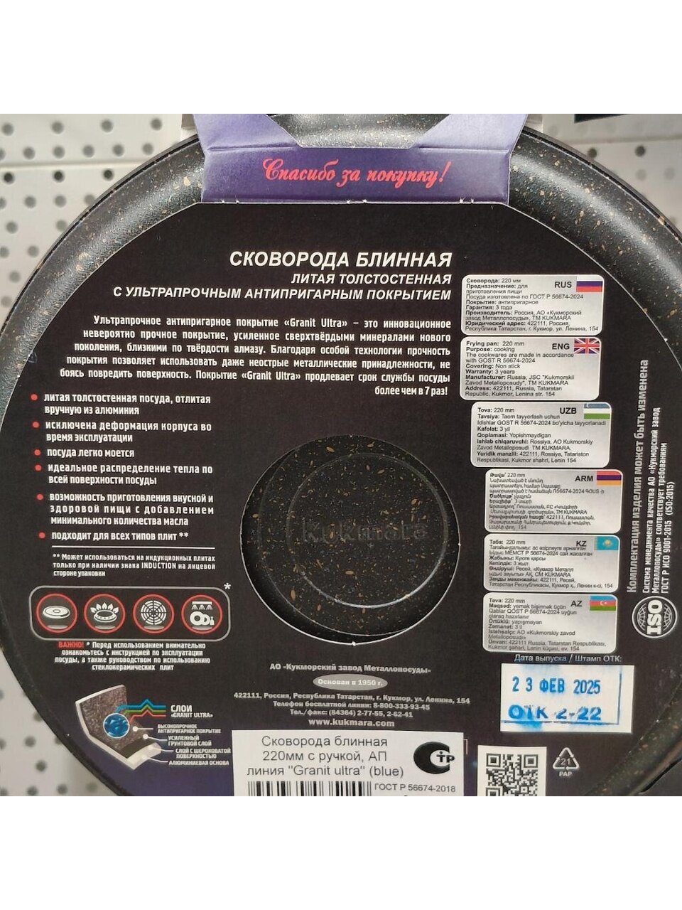 Сковорода "Kukmara" изготовлена из литого алюминия и покрыта инновационным антипригарным мраморным покрытием нового поколения на водной основе, усиленным сверхтвердыми частицами минералов.