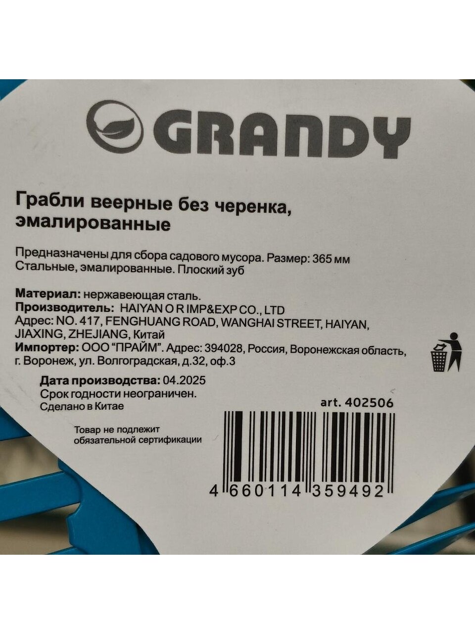 Грабли предназначены для сбора мусора на садовых участках, грядках и газонах. Рекомендуется использовать с черенком диаметром 24 мм.