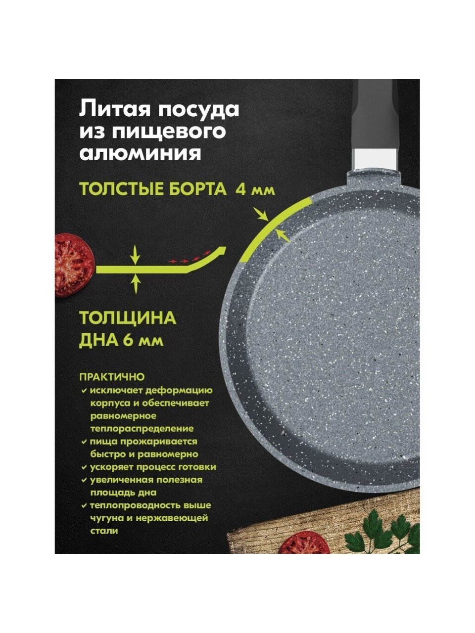 Сковорода блинница гранит из литого высококачественного пищевого алюминия «Мечта» станет незаменимым инструментом и надежным помощником на вашей кухне.