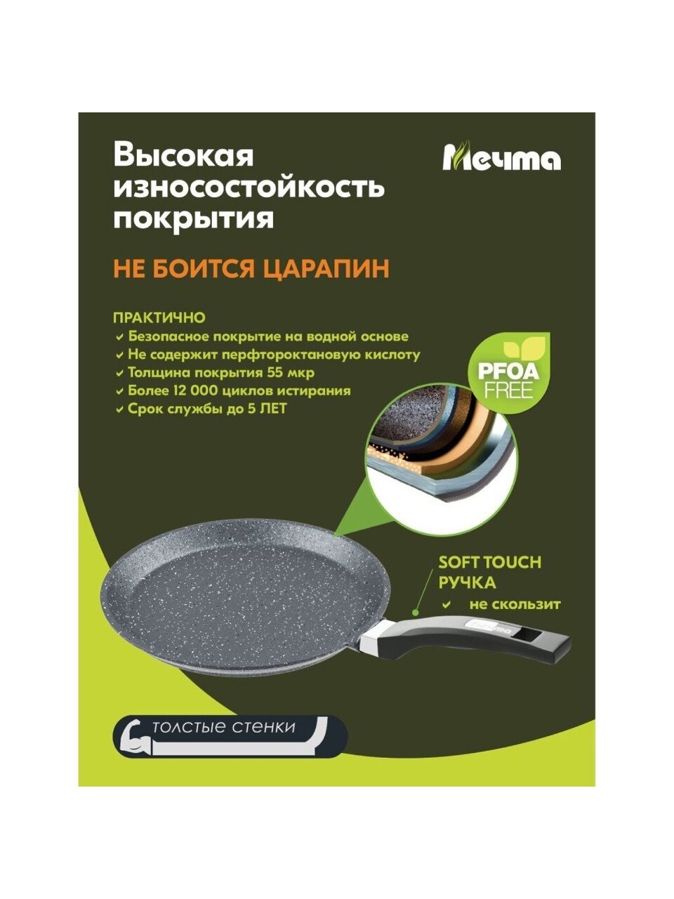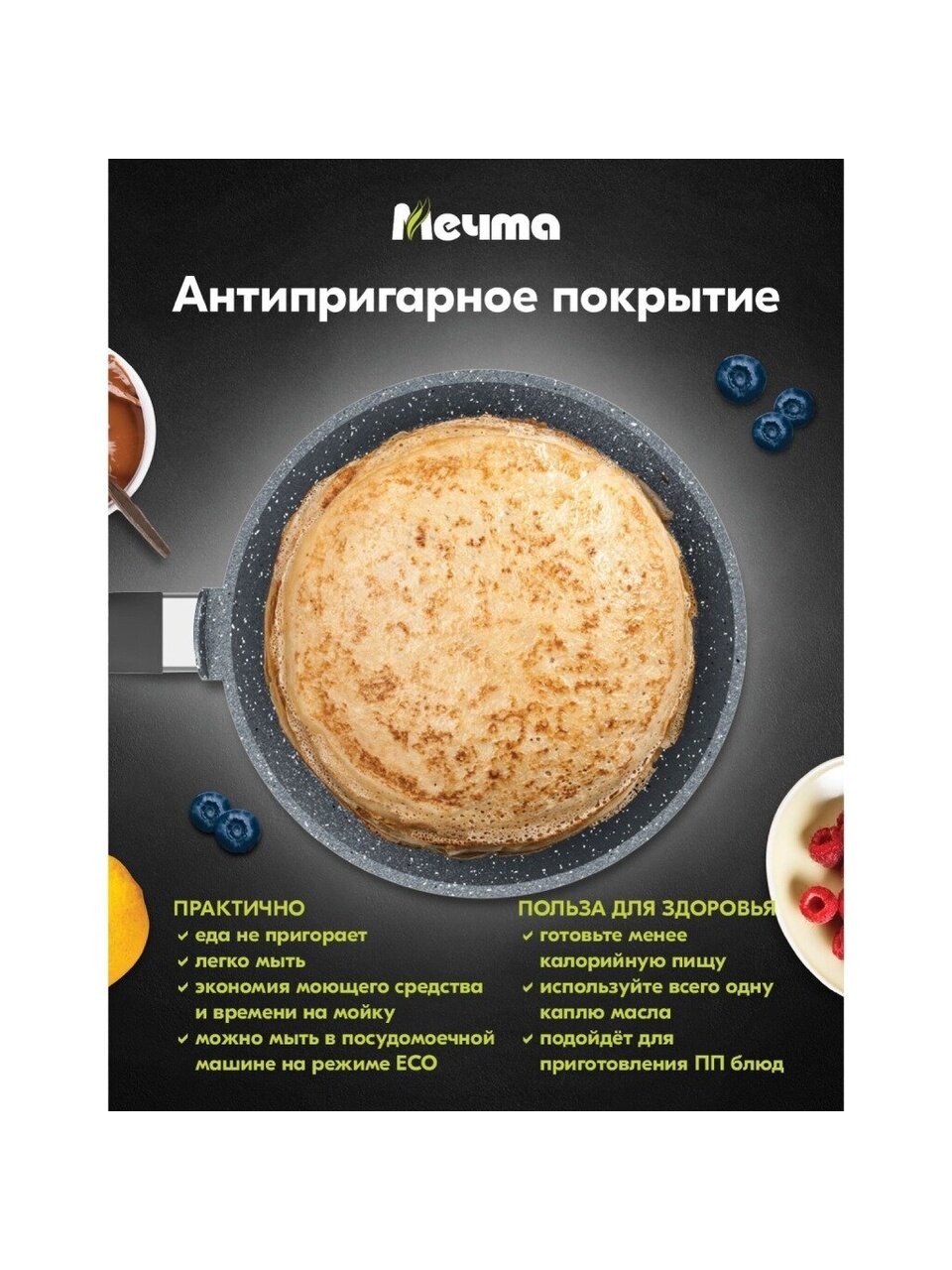 Сковорода блинница гранит из литого высококачественного пищевого алюминия «Мечта» станет незаменимым инструментом и надежным помощником на вашей кухне.