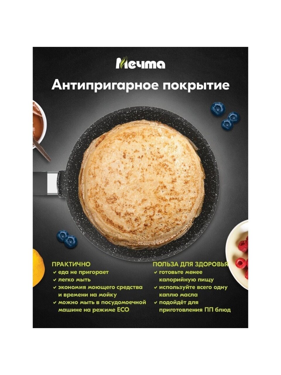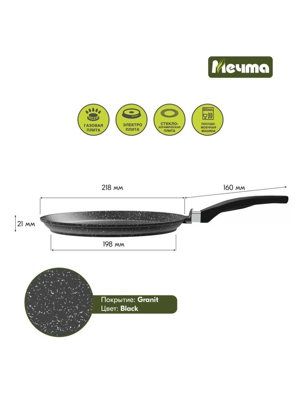 Сковорода блинница гранит из литого высококачественного пищевого алюминия «Мечта» станет незаменимым инструментом и надежным помощником на вашей кухне.