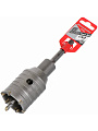 Коронка используется в перфораторах с системой крепления SDS-plus. Предназначена коронка для работы по бетону, кирпичу и плотному известняку. Корпус оснастки изготовлен из качественной стали, что обуславливает ее высокую износостойкость.