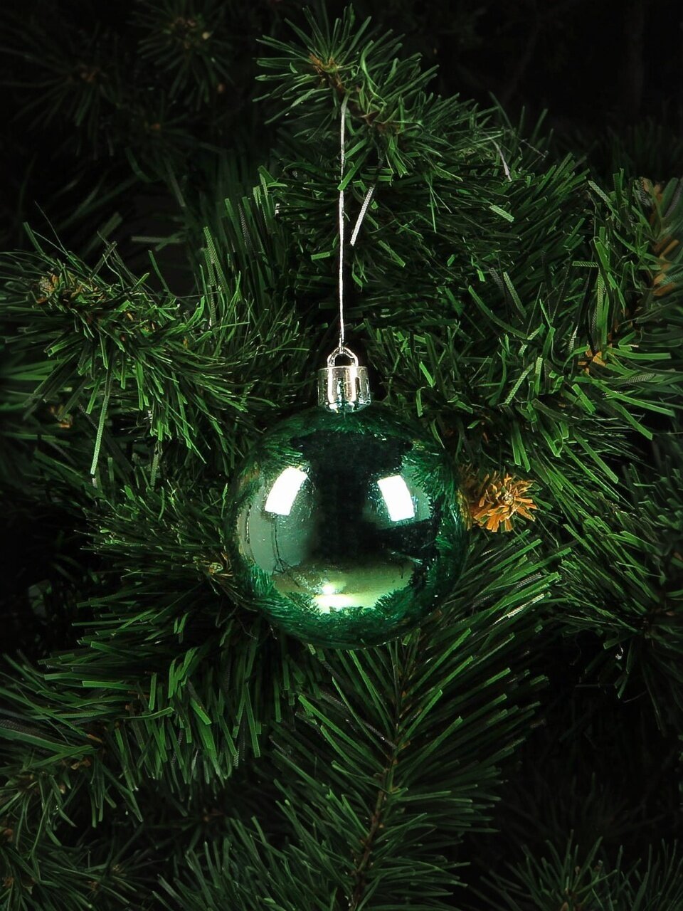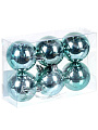 В комплекте 6 штук, все шары однотонные, мятного цвета с блестящим покрытием, упакованы в коробку для удобного хранения.