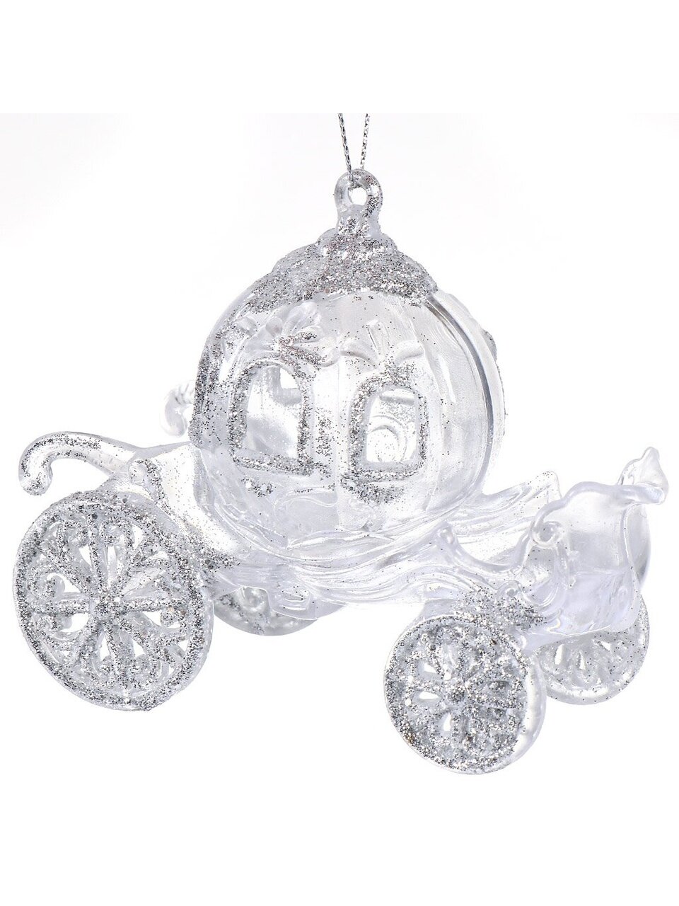 Елочное украшение Карета серебро 12х6х10 см — эффектный акцент для праздничного декора, устойчивый к ударам, подходит для улицы и подарка. Не бьётся — не подведёт!