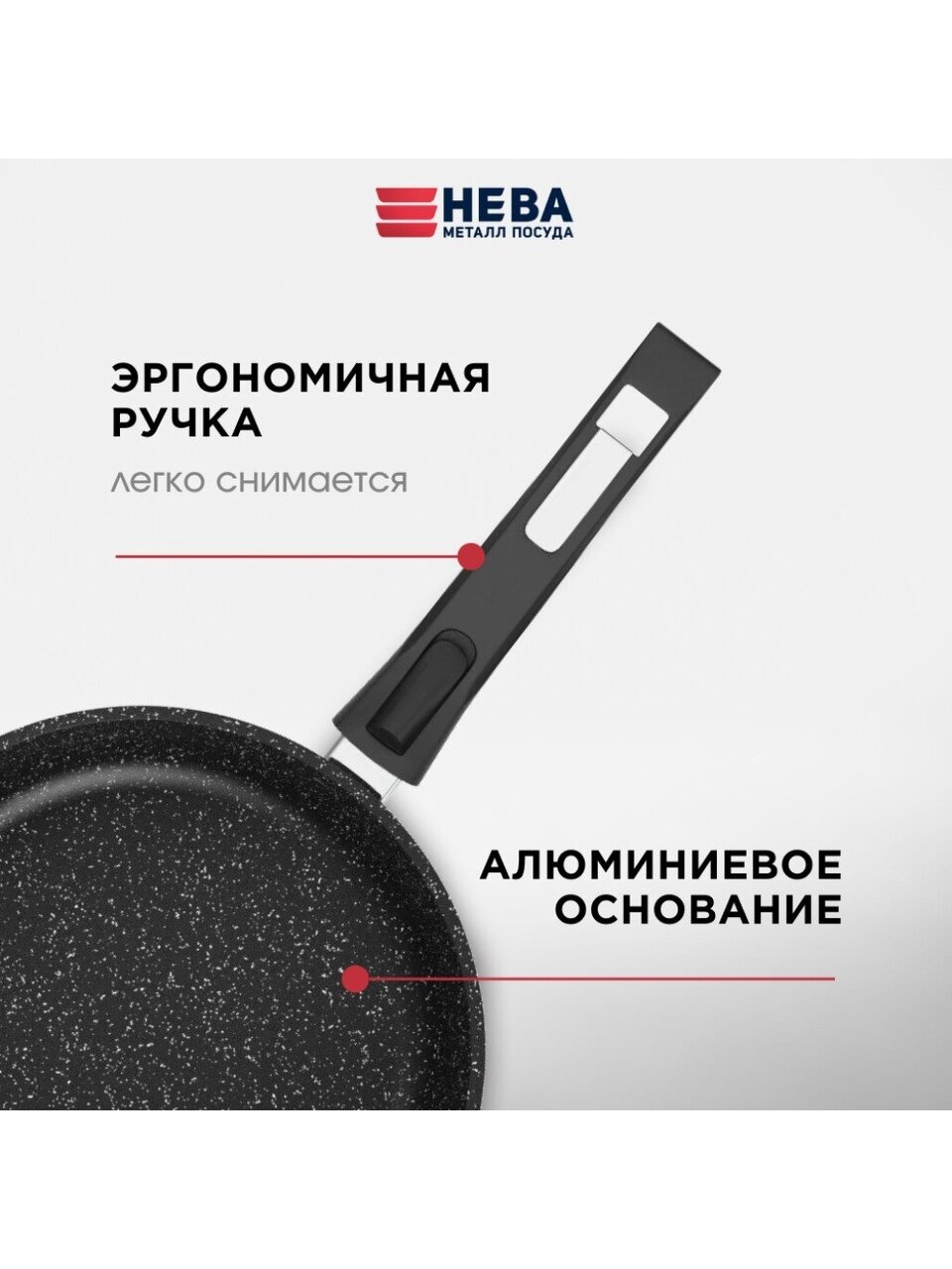Сковорода Нева Металл Посуда Гранит 22 см: литой алюминий, съемная ручка, антипригарное покрытие, подходит для индукции – универсальное решение для дома и дачи.