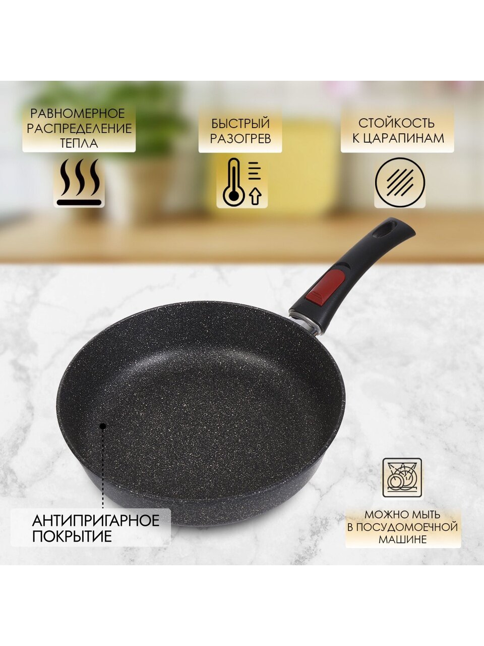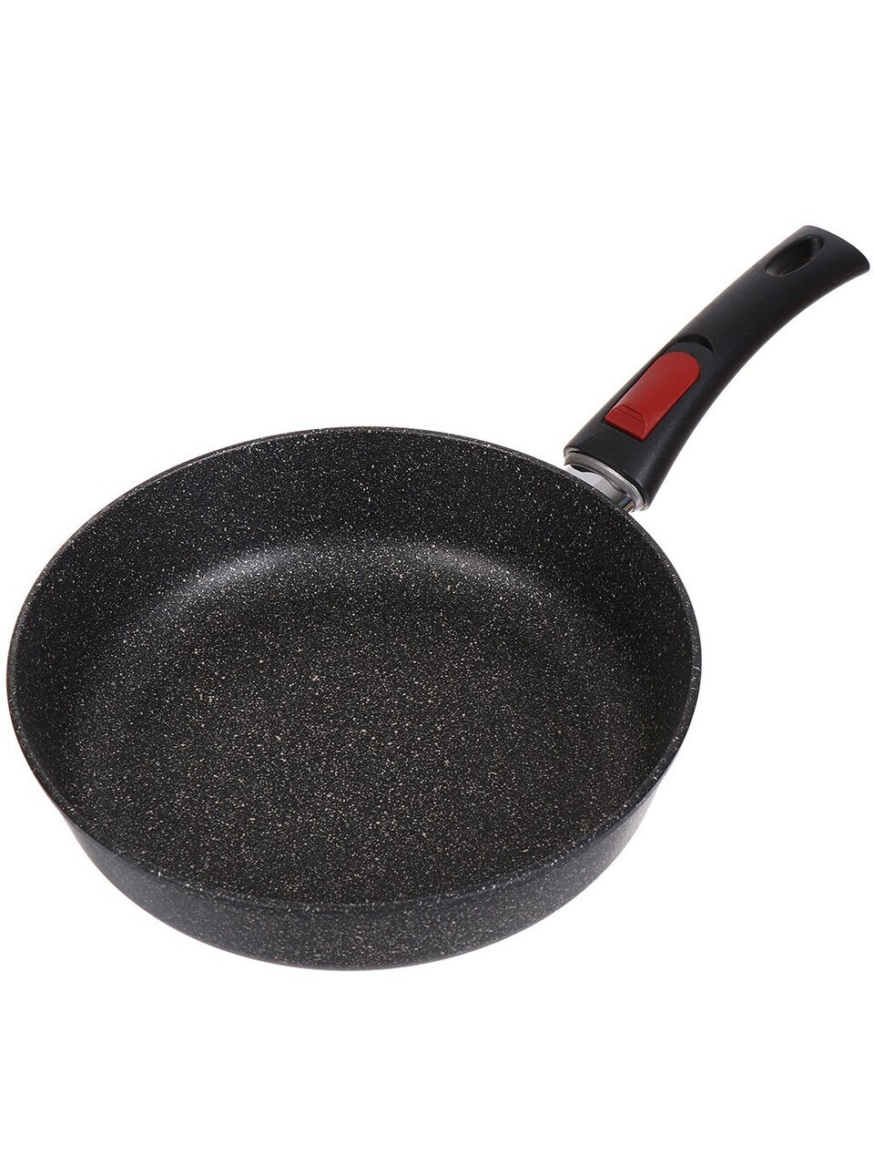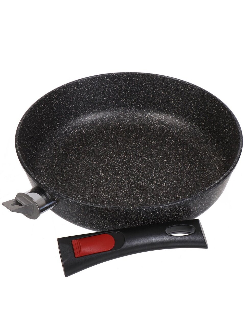 Сковорода 26 см из литого алюминия с антипригарным гранитным покрытием и съемной ручкой — идеальное решение для индукционных плит и универсального использования дома и на даче.