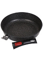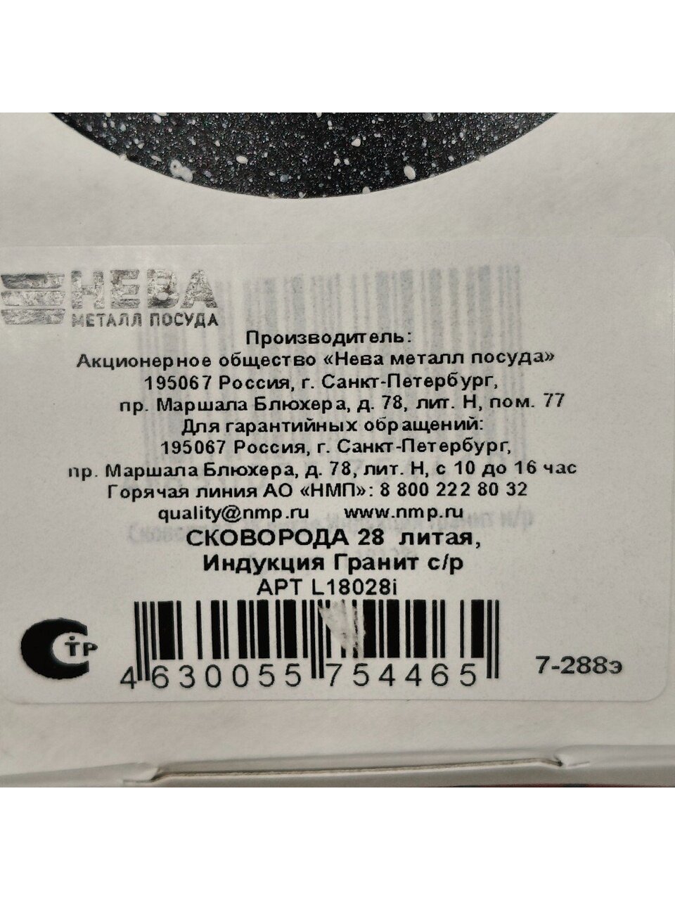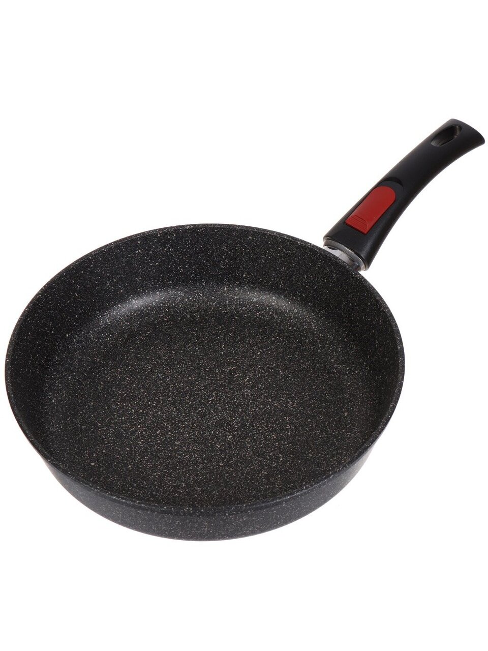 Сковорода литой алюминий 28 см Нева Металл Посуда: антипригарное гранитное покрытие, съемная ручка, подходит для индукции и посудомойки.