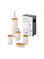 Коллекция «Бамбук» станет отличным решением для создания уюта и комфорта в ванной комнате. Коллекция имеет оригинальный дизайн за счет сочетания двух разных материалов – качественного пластика и бамбука. Пластик не подвержен внешним воздействиям, легко моется и не желтеет со временем. Вставки из бамбука имеют специальную обработку, которая защищает их от размокания и плесени. Коллекция «Бамбук» включает в себя все необходимые изделия для ванной комнаты: