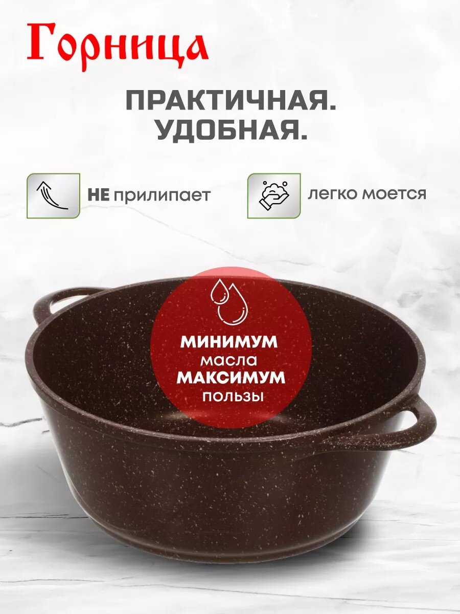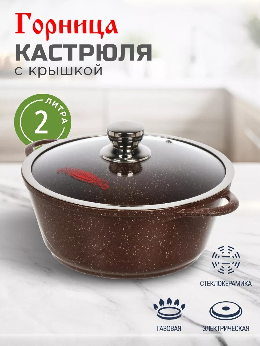 Кастрюля 2 л Горница Шоколад — идеальный выбор для дома и дачи: антипригарное мраморное покрытие, стеклянная крышка, подходит для супа, плова, пюре.