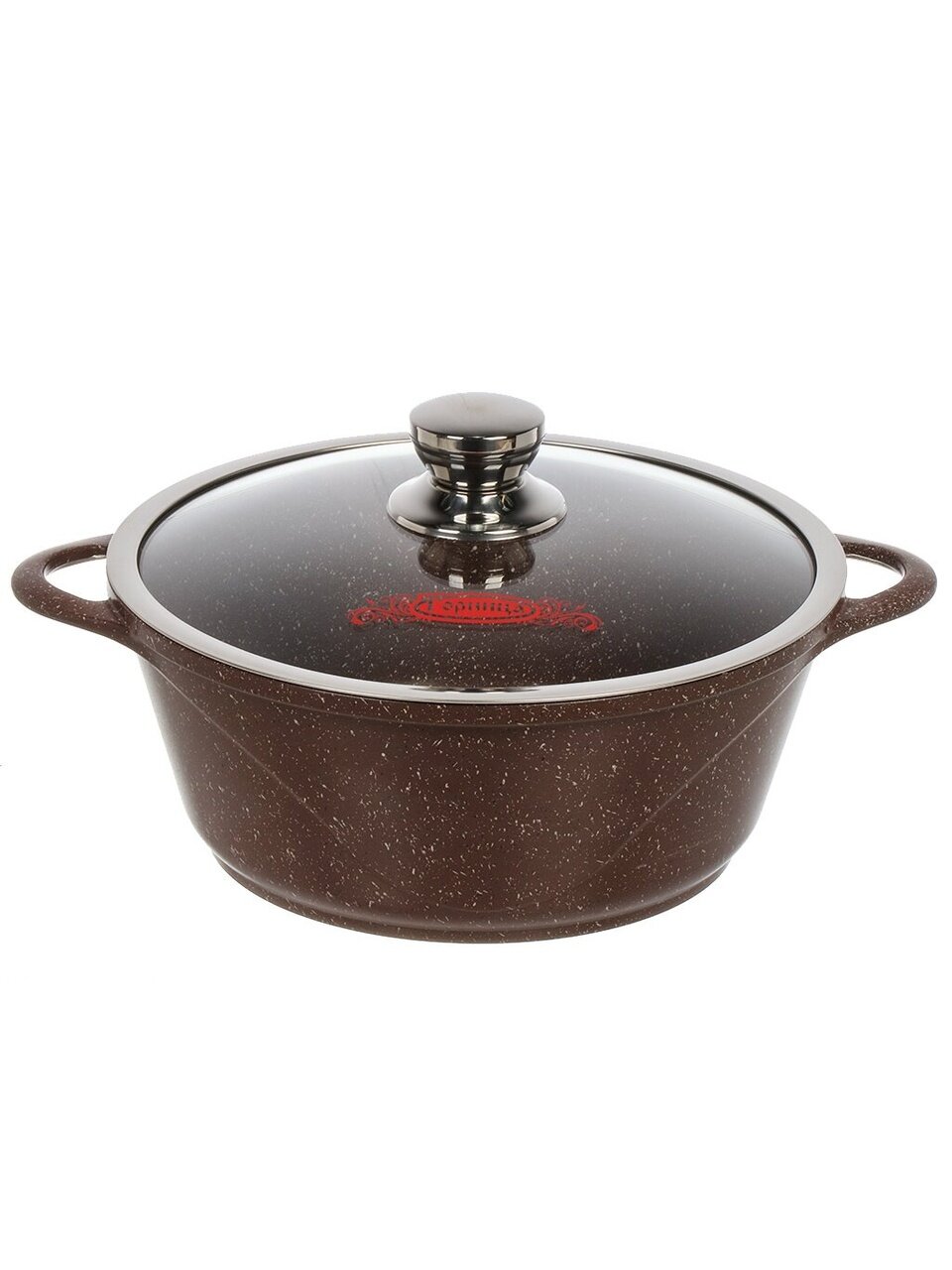 Кастрюля Горница Шоколад 4 л — антипригарная алюминиевая посуда с крышкой из закалённого стекла. Готовьте без пригорания и упростите уход за посудой дома и на даче.
