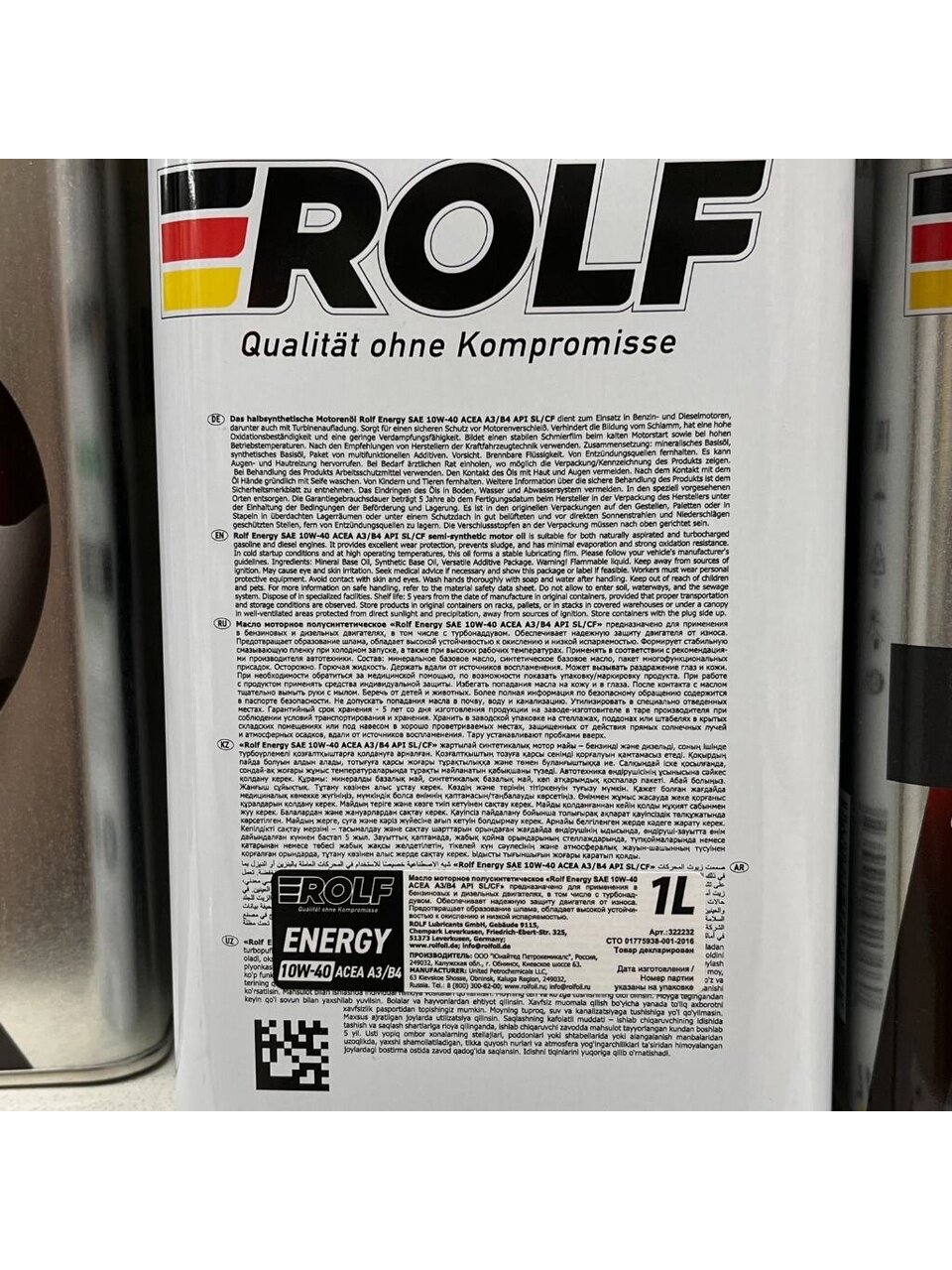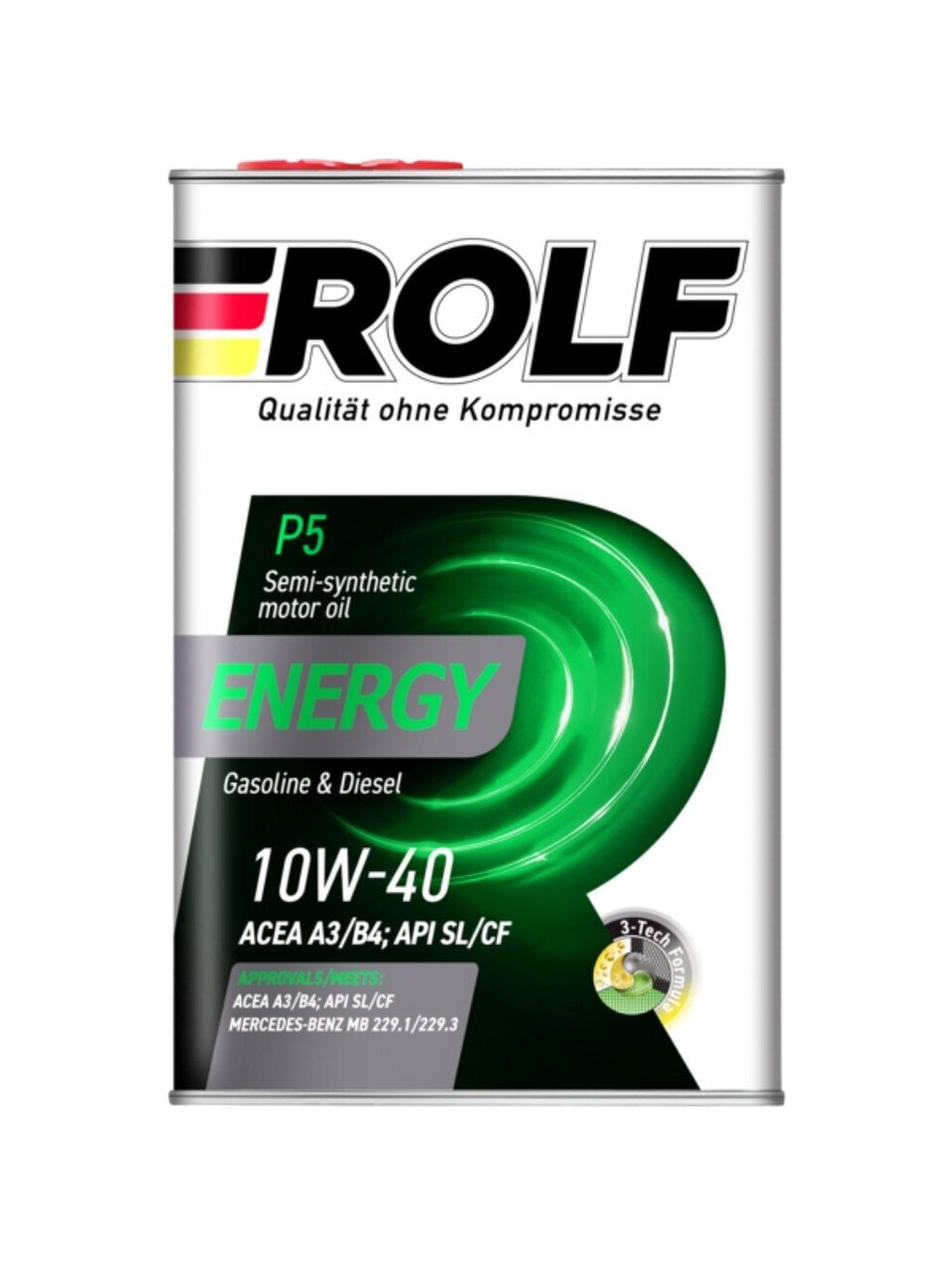 Моторное полусинтетическое масло Rolf Energy SAE 10W-40 API SL/CF - полусинтетическое высокоэффективное моторное масло производится из качественных базовых масел и современного пакета присадок. Обеспечивает надежную смазку и защиту двигателя, и высокие эксплуатационные свойства масла при увеличенных интервалах замены.