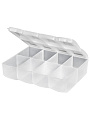 Пластиковый органайзер на 8 отсеков одинакового размера в полупрозрачном корпусе. Подходит для хранения крепежей, метизов и других нужных в деле домашнего мастера мелочей. Может использоваться как органайзер для рукоделия (иглы, бисер, пуговицы), канцелярии (скрепки, скобы, ластики).