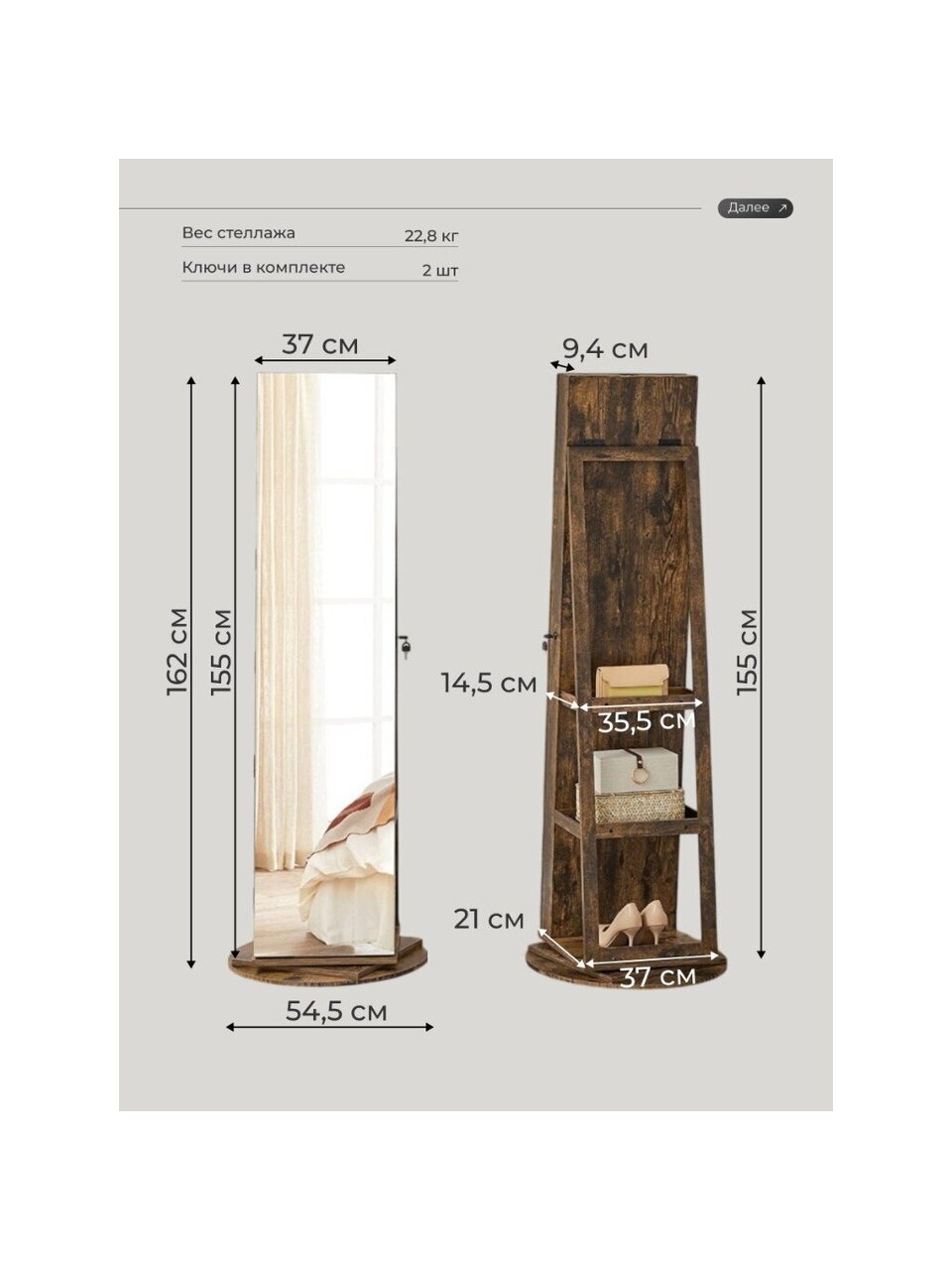 Больше никакого беспорядка: этот шкаф для украшений «все в одном» — то, что вам нужно, чтобы все упорядочить. Благодаря большому шкафу, зеркалу, полке и выдвижному ящику в нем есть все, что вам нужно, в одном месте, что максимально увеличивает пространство для хранения и экономит время.