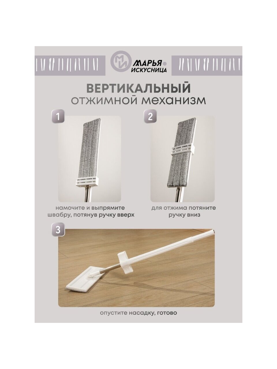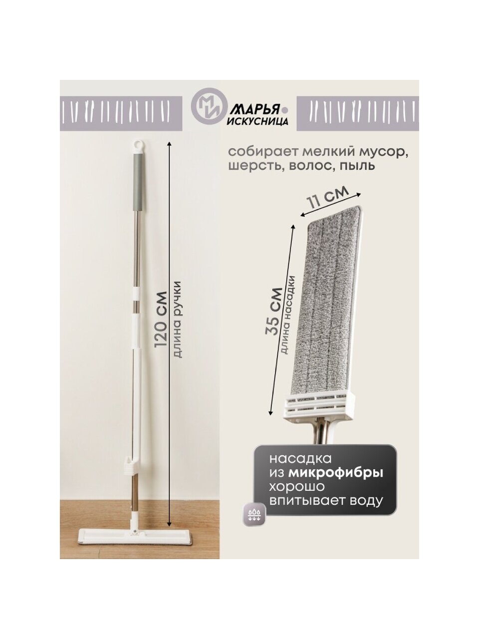 Швабра с насадкой из микрофибры подходит для влажной уборки и мытья полов из любых материалов, идеальна для ухода за натуральными напольными покрытиями: паркетная доска, пробковые полы, сизаль. Не оставляет разводов и ворсинок. Позволяет сократить время сухой и влажной уборки полов. Прекрасно справляется с уборкой в труднодоступных местах: под шкафами, диванами и т.п.