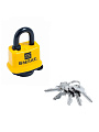 Конструкция замка повышает стойкость к взлому, а закаленная дужка снижает вероятность её распила. Корпус изготовлен из стали, что гарантирует долгий срок службы.