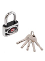 Конструкция замка повышает стойкость к взлому, а закаленная дужка снижает вероятность её распила. Корпус изготовлен из стали, что гарантирует долгий срок службы.