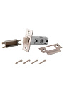 Классические врезные защёлки с металлическим язычком без фиксации устанавливаются в межкомнатные деревянные двери совместно с дверными ручками.