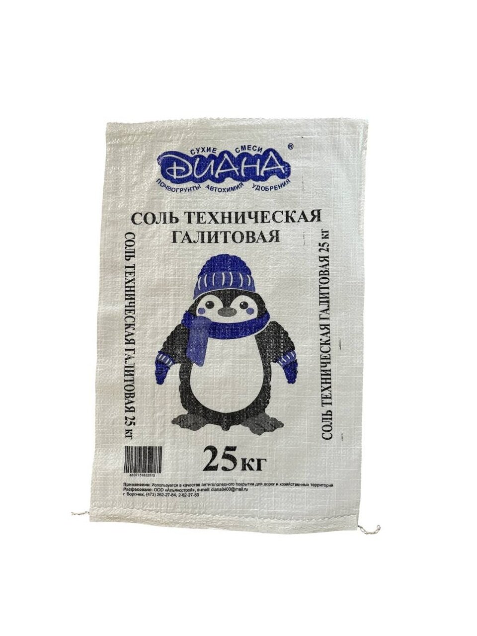 Соль галитовая Диана используется в качестве антигололёдного реагента и является одним из самых популярных в России. Дорожно-эксплуатационные службы, несмотря на огромное разнообразие современных высокоэффективных противогололёдных реагентов, отдают предпочтение галитовой соли.