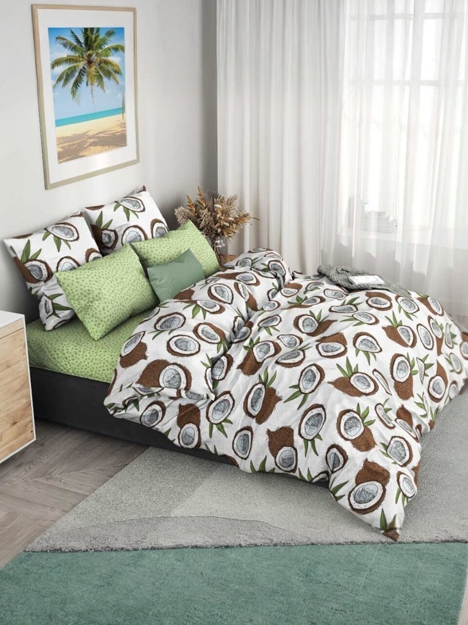 Постельное белье 1.5-спальное «Кокосы» из бязи: комфортный сон, стильный дизайн, хлопок, подарочная упаковка — идеальный выбор для дома и дачи.