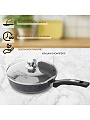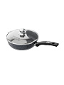 Чем отличается эта модель от обычных сковород? Помимо антипригарного покрытия нового поколения, она идет в комплекте с крышкой, что расширяет сценарии использования: тушение, жарка, приготовление омлета или оладий. Сковорода легко моется в посудомоечной машине, а отсутствие съемной ручки делает конструкцию максимально надежной. Подходит для газовых, стеклокерамических, электрических и галогеновых плит — идеальный вариант для дачи, дома или в подарок.