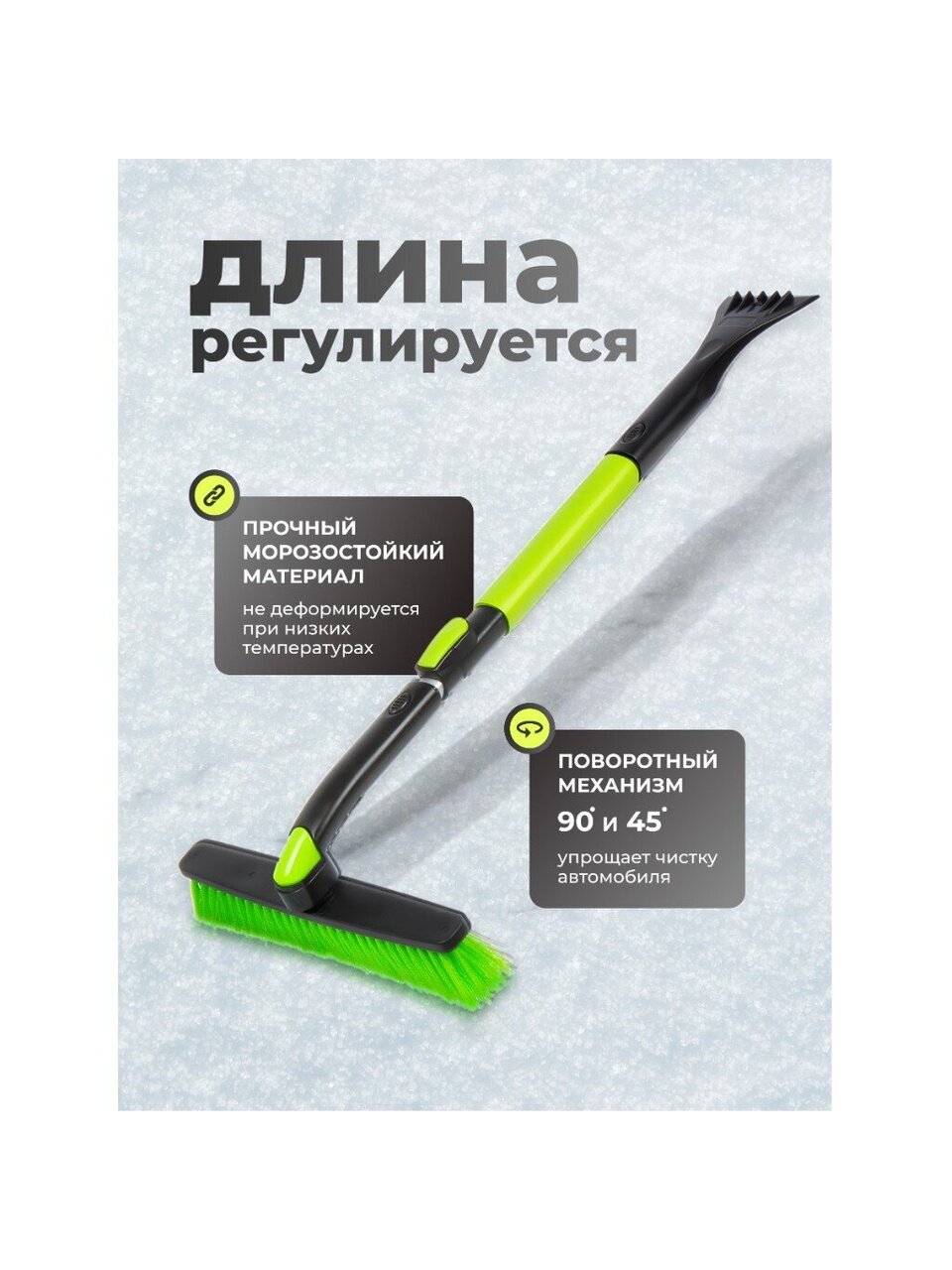 Щетка со скребком для удаления снега и льда - прочный и надежный инструмент, при помощи которого можно эффективно и быстро очистить автомобиль от выпавшего и намерзшего снега. Щетка для снега со скребком изготавливается с применением мягкой полимерной щетины, которая служит для деликатной, но при этом эффективной очистки кузова и стекол автомобиля. Пластиковые детали отличаются морозоустойчивостью, износостойкостью и долговечностью.