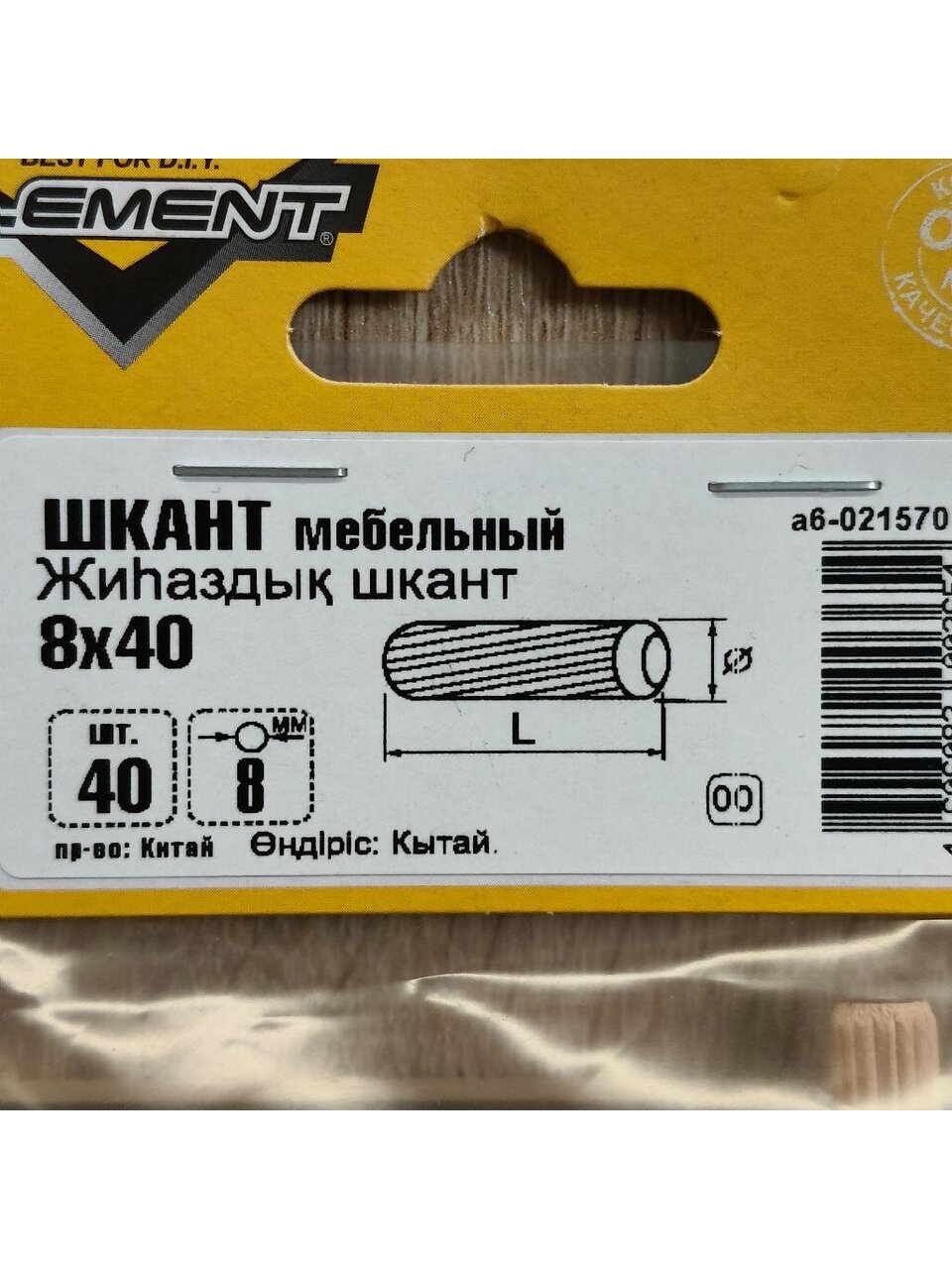 Крепежное изделие из дерева в форме цилиндра с фасками. Шкант мебельный незаменим в производстве для соединения деталей из фанеры, массива дерева, МДФ, ДСП и других материалов между собой.