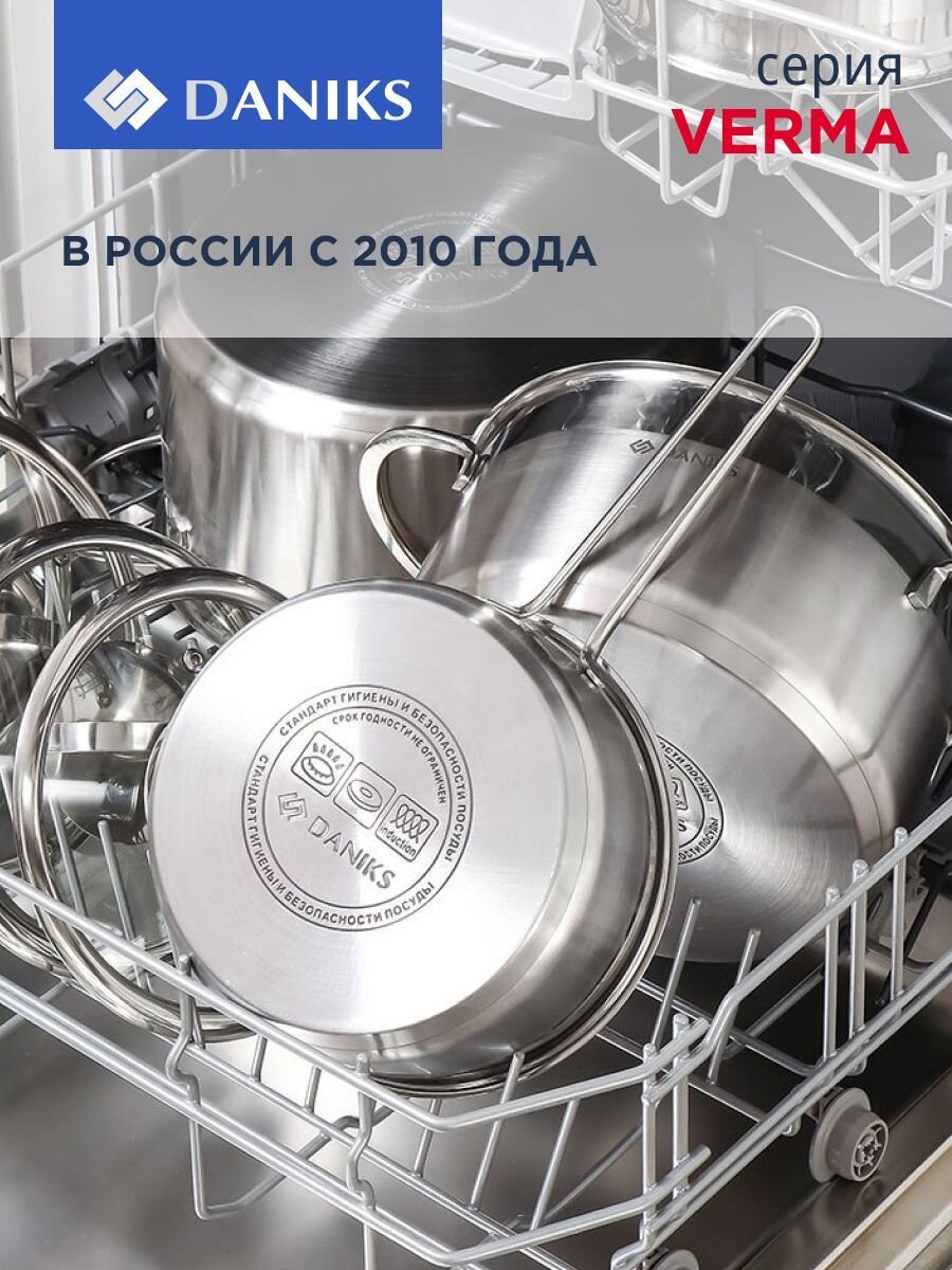 Кастрюля Daniks Верма 2.4 л: универсальное решение для индукции, газа и стеклокерамики. Прочная сталь 304, стеклянная крышка, мерная шкала — идеальна для дома и дачи.