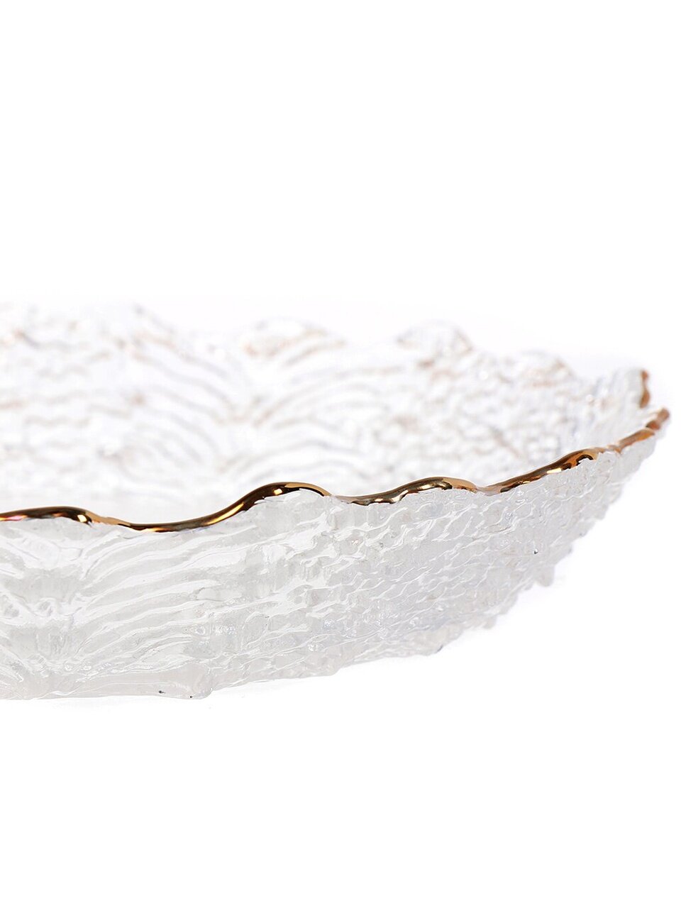 Тарелка стеклянная 19,5 см с золотой каймой Алмаз Y6-10094 — стильная сервировка для дома и подарка, безопасна для посудомоечной машины, не тускнеет со временем.