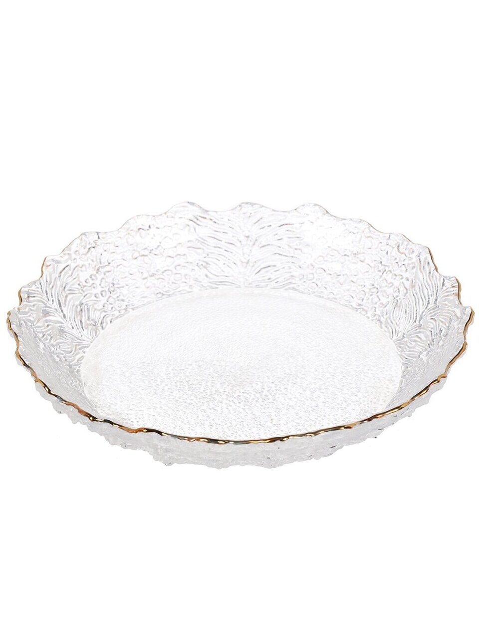 Универсальный дизайн, прочное стекло и оптимальный размер делают её удобной для ежедневного использования и сервировки праздничных блюд. Элегантная золотая кайма добавляет презентабельности — отличный вариант для подарка.