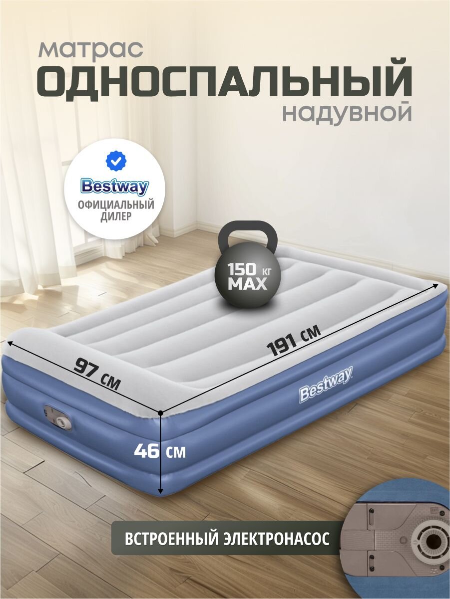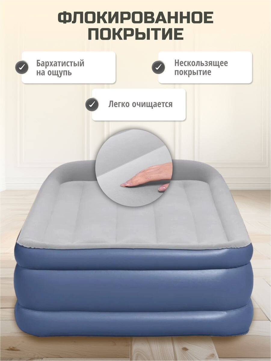 Надувной матрас Bestway обеспечивает комфортный и здоровый сон в любой ситуации. Изготовленный из прочного флокированного винила, он имеет особую конструкцию, которая сохраняет свою форму даже при неравномерной нагрузке.