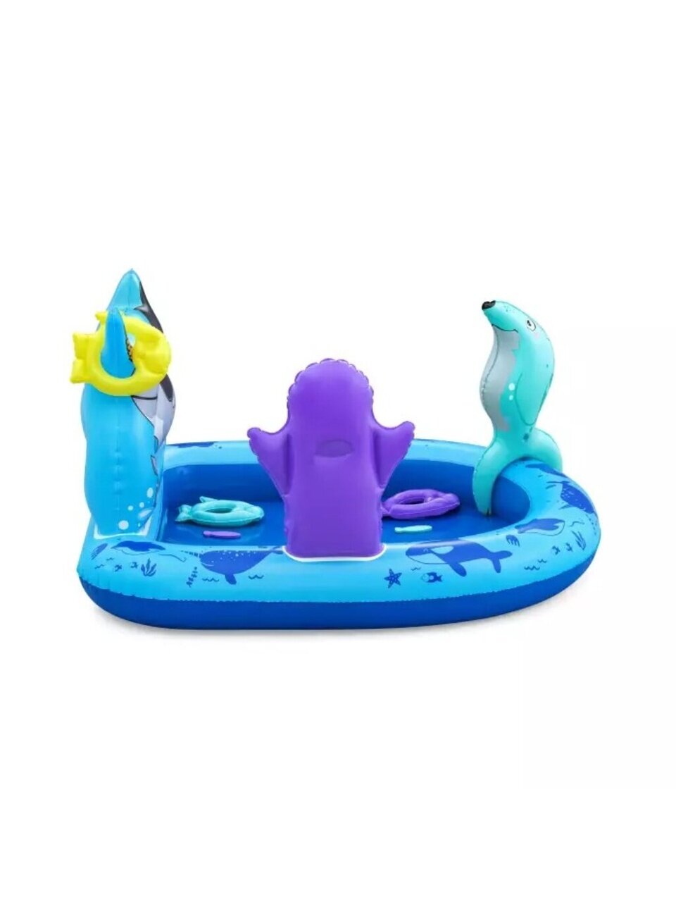 Игровой центр-бассейн Bestway, с размерами 134х131х73 см, предлагает не только освежающее купание, но и массу развлечений благодаря своим уникальным элементам. В комплект входят две пенопластовые рыбки и надувной тюлень, которые делают процесс игры более интересным и захватывающим. Рог нарвала и нос тюленя служат увлекательной игрой в бросание колец, что помогает развивать координацию и моторику у детей.