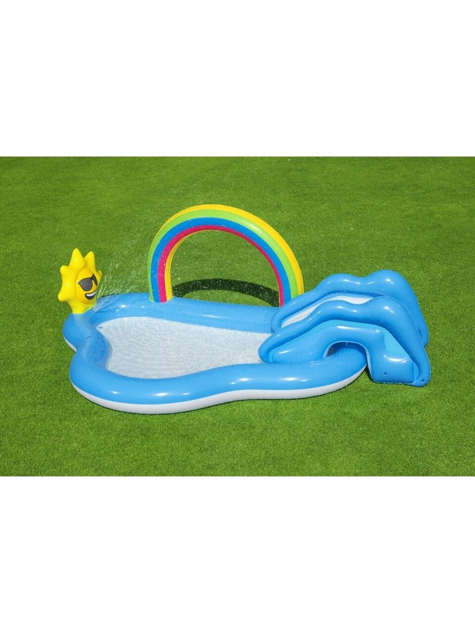 Детский бассейн "Радуга и брызги" от Bestway – это не просто место для купания, а настоящий надувной игровой центр. Встроенные разбрызгиватели воды с подключением для садового шланга создают эффект фонтана, который добавляет веселья и освежает в жаркие летние дни. Съемная горка с веревкой и люверсами для крепления позволяет детям скользить и плескаться, развивая координацию и даря море позитива. Дизайн в виде облаков и радуги превращает бассейн в сказочное место, где каждый малыш сможет почувствовать себя настоящим героем своих фантазий.