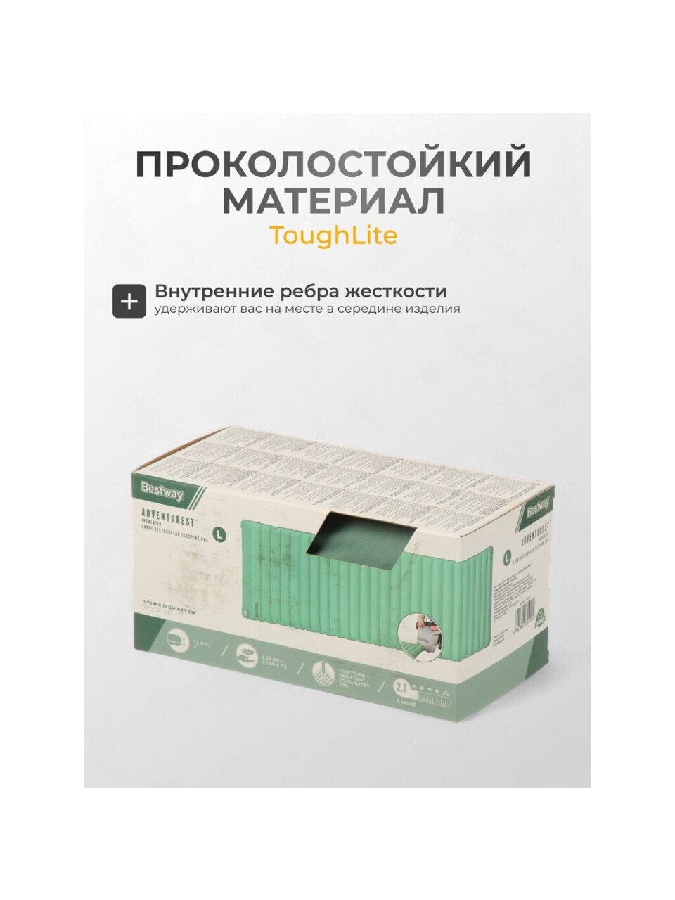 На туристическом коврике Bestway AdventuRest Вы ощутите максимальный комфорт во время сна даже в суровых условиях похода. Он не занимает много места, и его удобно брать с собой. Благодаря качественным материалам коврик прослужит Вам не один сезон, сохранив свои теплоизоляционные свойства.