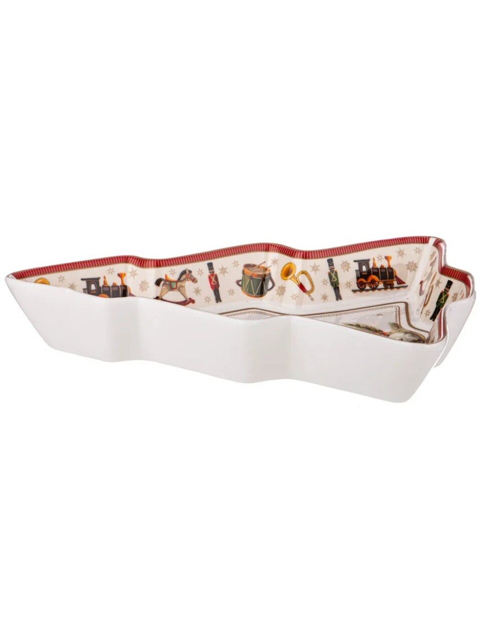 Фигурное блюдо Lefard «Щелкунчик» — это не просто посуда, а акцентный аксессуар для праздничного стола. Фарфор устойчив к царапинам, не впитывает запахи и легко очищается вручную. Благодаря эксклюзивному рисунку и форме елки, блюдо гармонично впишется в новогодний декор и станет центральным элементом сервировки.
