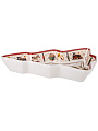 Размер блюда — 21 см ширина, 25 см длина, 4 см высота. Форма фигурная, выполнена в виде елки, материал — фарфор.