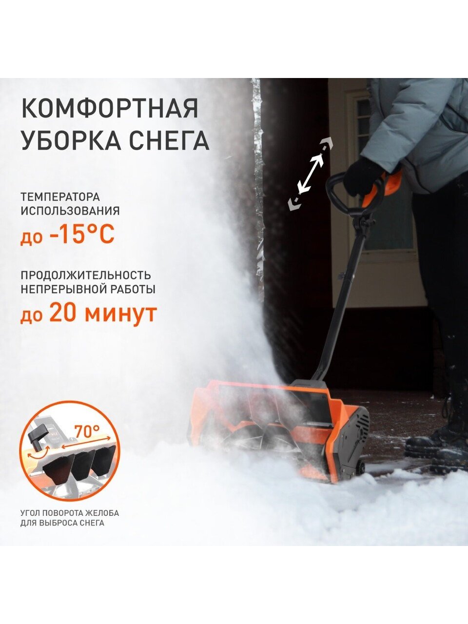 В отличие от традиционных методов уборки снега, снегоуборщик позволяет не только быстрее справиться с сугробами, но и сохранить силы и время для других важных дел. Больше не придется часами махать лопатой, счищая снег с дорожек и ступенек - электрическая снегоуборочная машина сделает всю работу за вас. Компактный размер и небольшой вес устройства делают его невероятно удобным в использовании, а бесшумная работа гарантирует комфорт и спокойствие вам и вашим близким.
